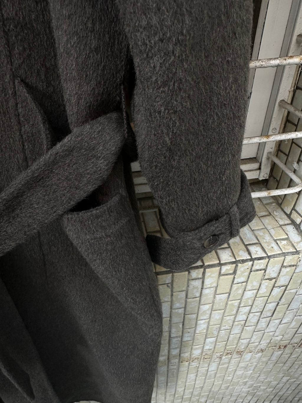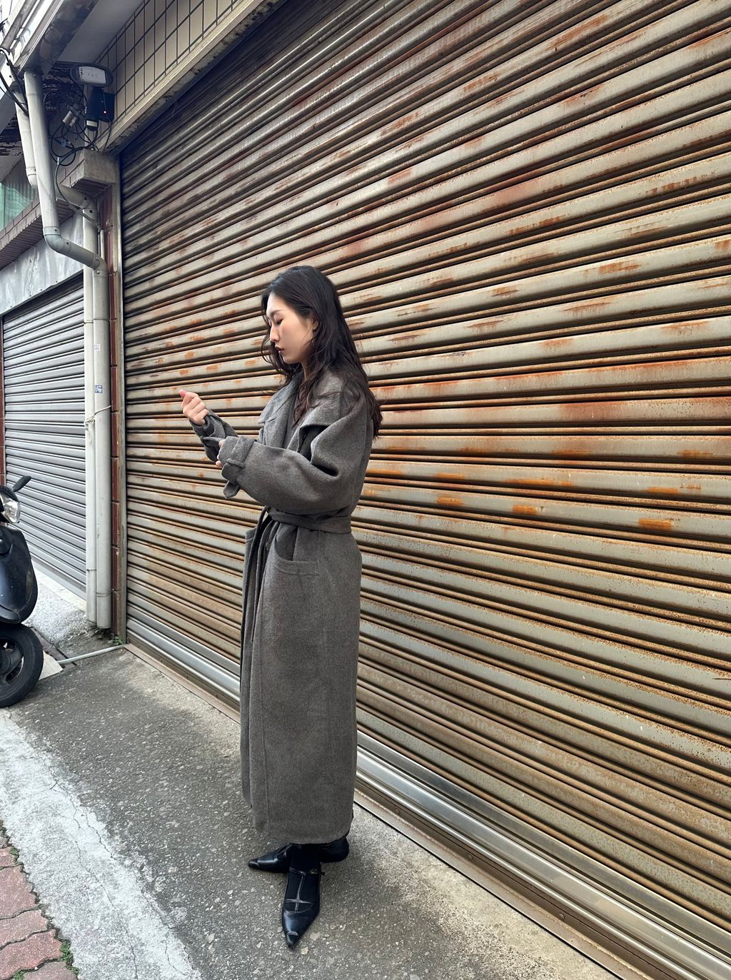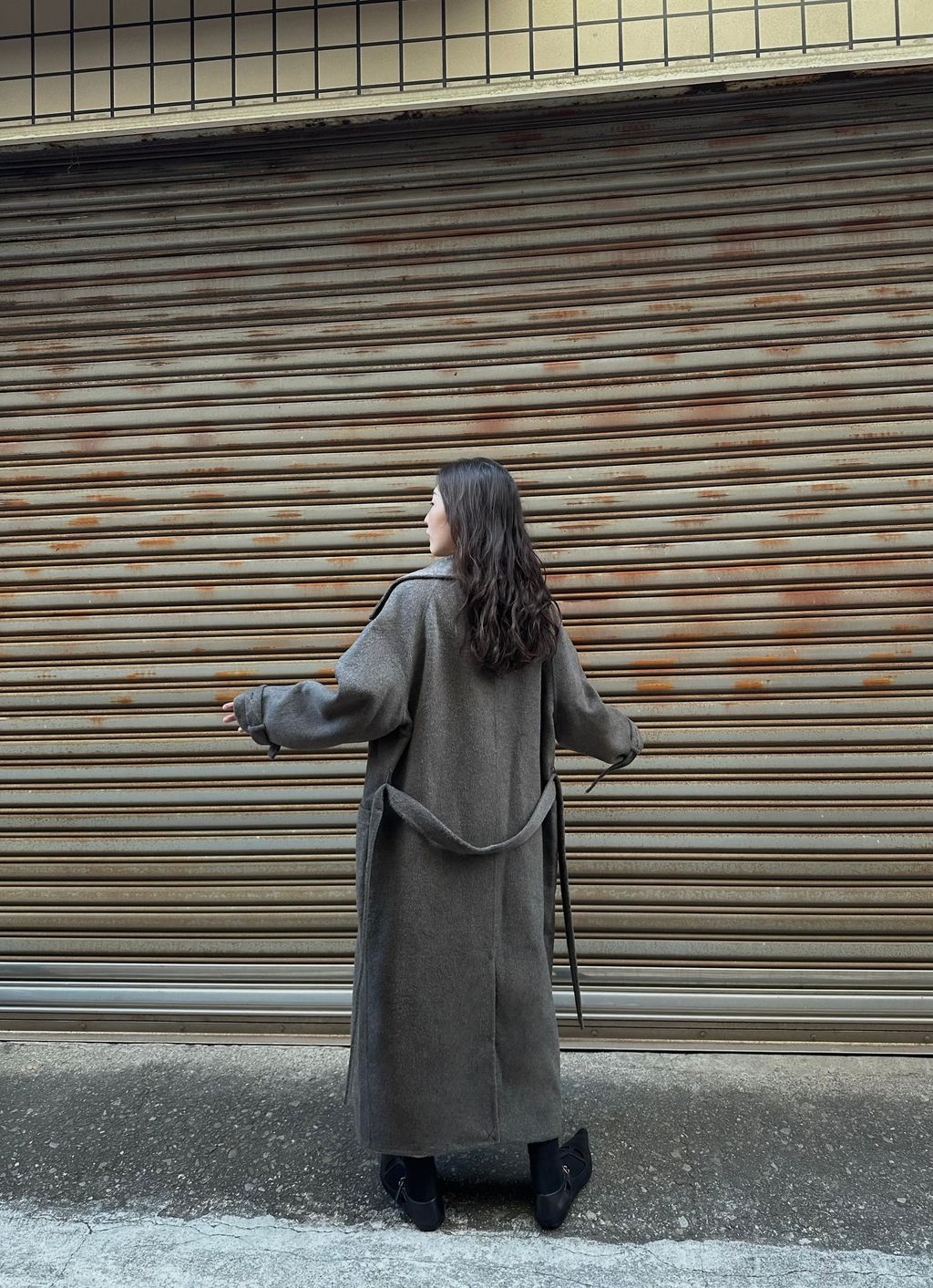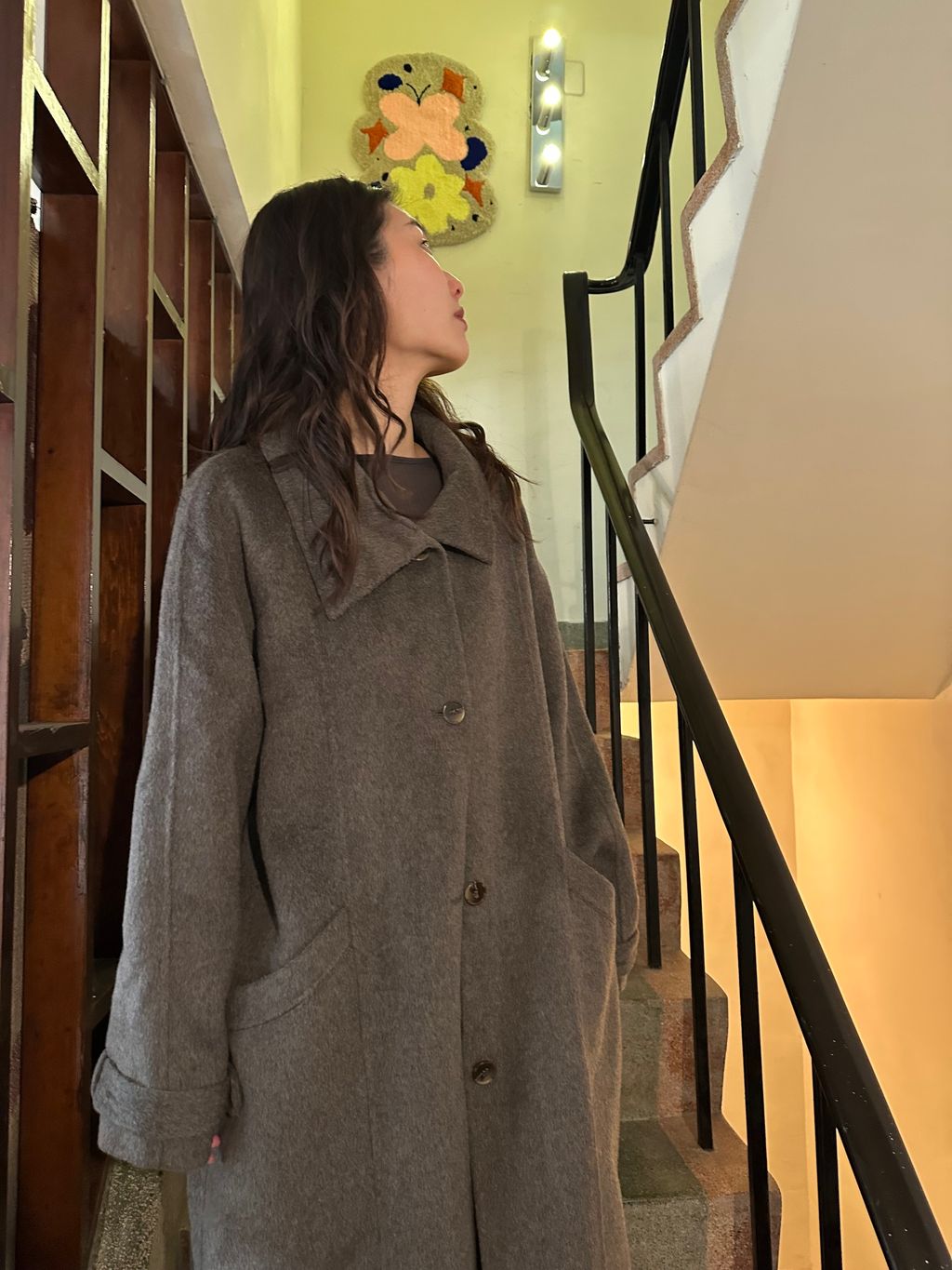 這款的顏色是灰棕色,我自己是很愛灰色毛料大衣的人,因為是好搭、好看又很有質感的顏色