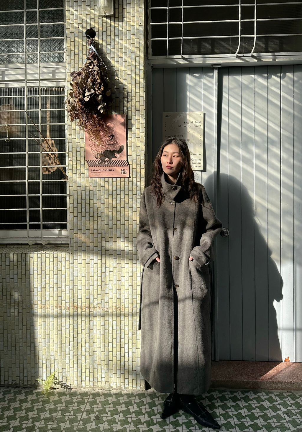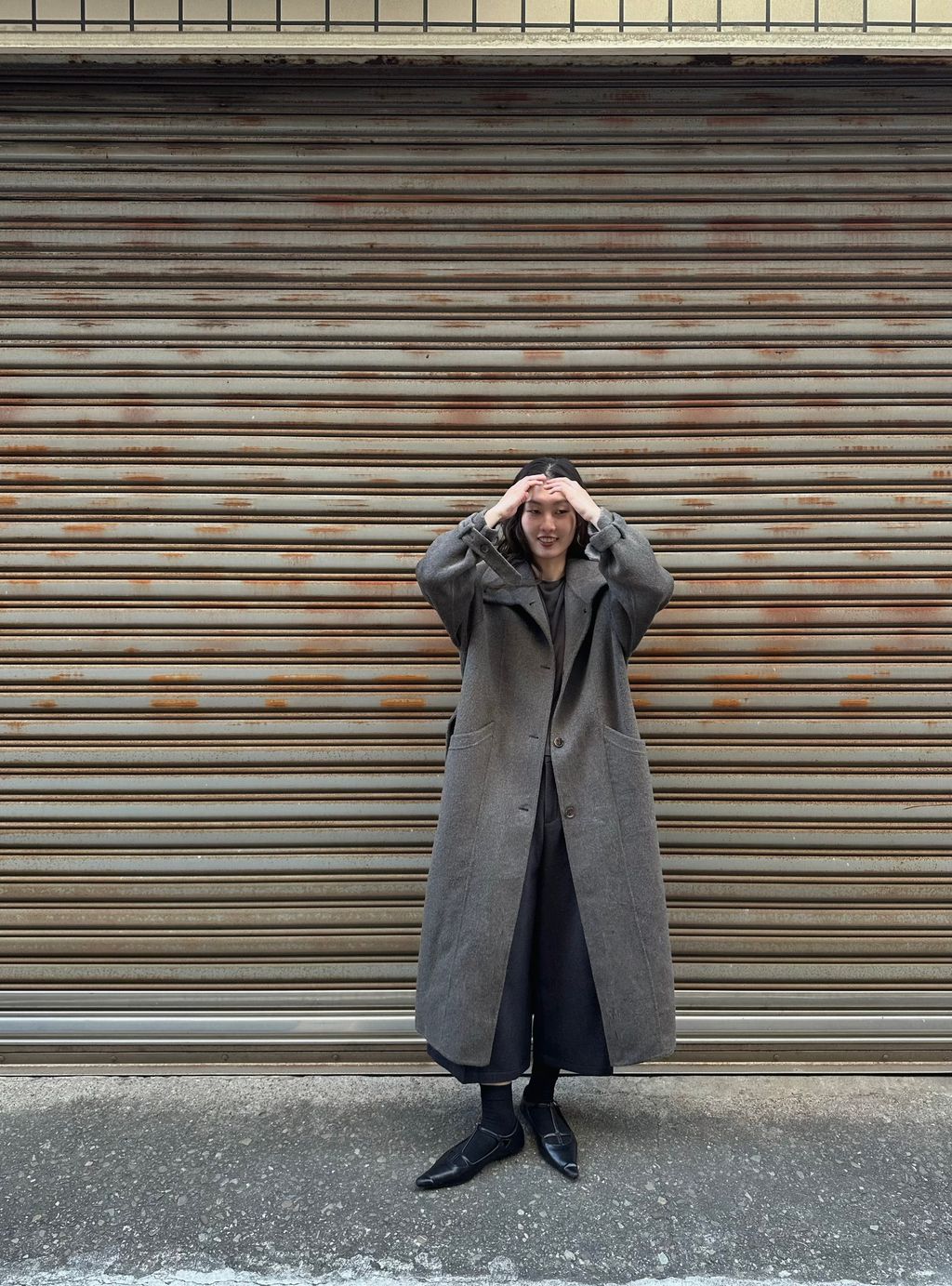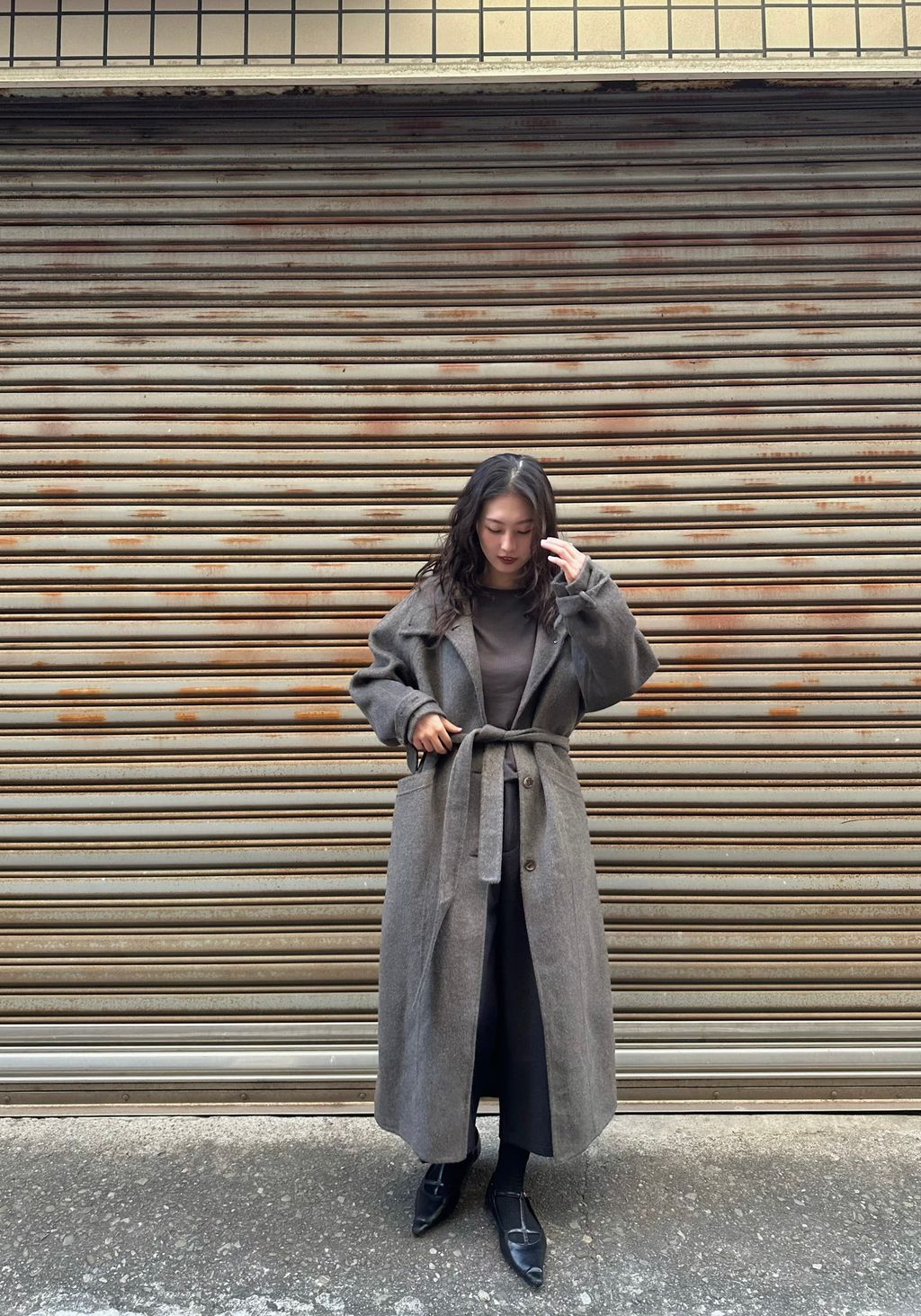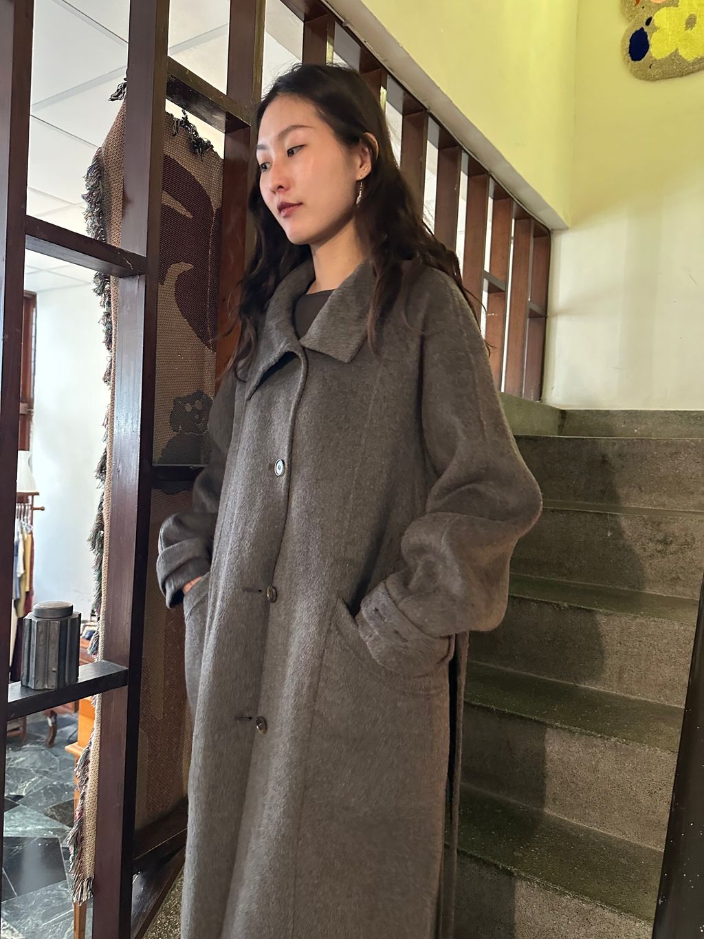 但這件帶棕色調,又不發黃,一樣有著灰色調的清冷感,但不會像一般灰色長大衣那麼嚴肅的感覺,反而比起正統的灰色調更加時髦又耐看