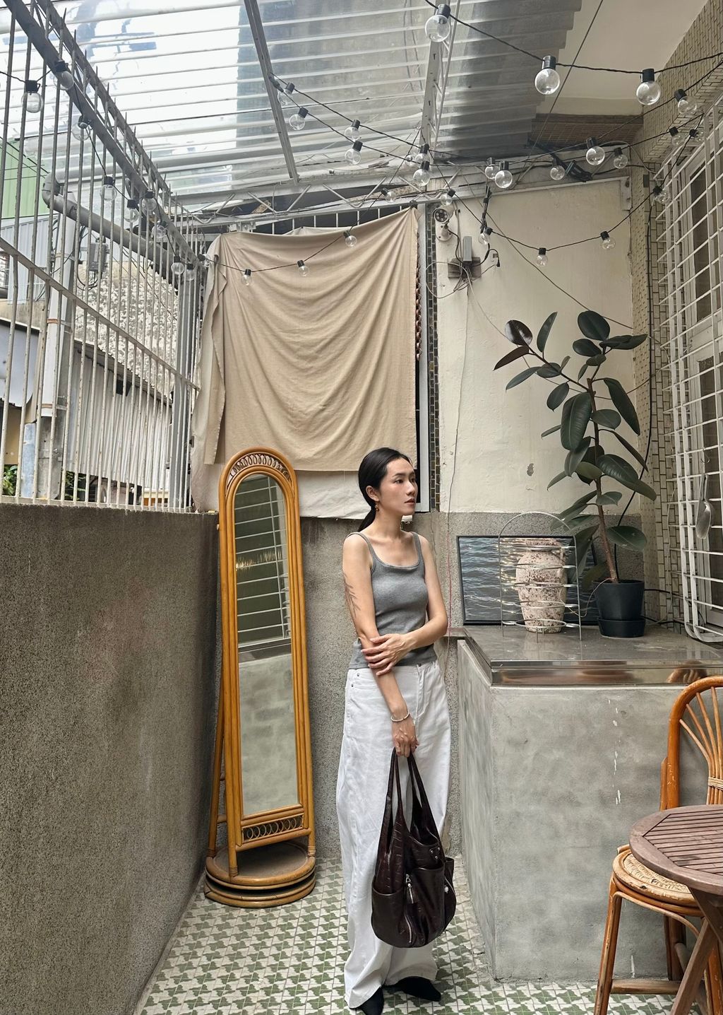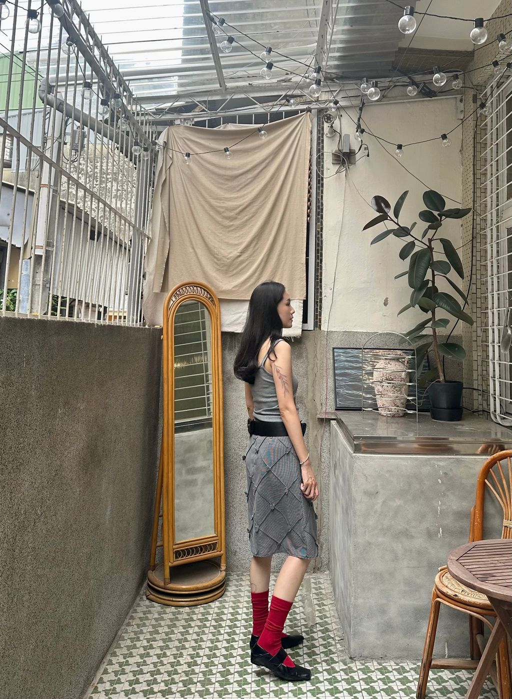 當然也可以利用這樣的領口視覺效果去內搭或是當作罩衫背心搭配,只要肩帶跟領型做得好看,除了單穿之外也非常適合層次搭配