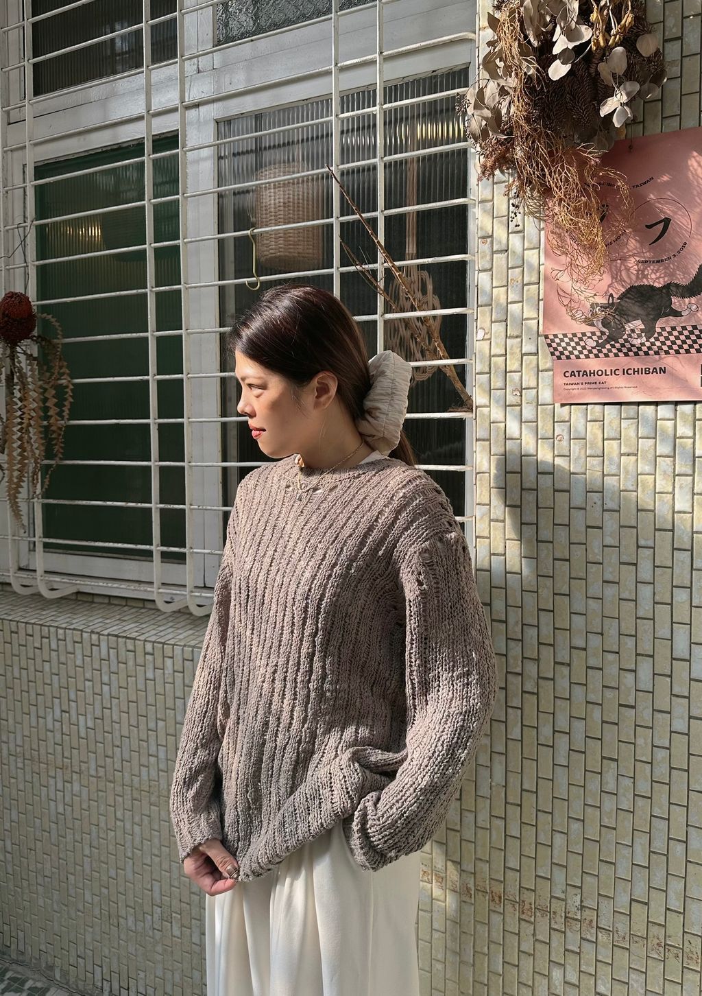 棉跟合纖的線織成,充滿氛圍感的粗針織製作很好看