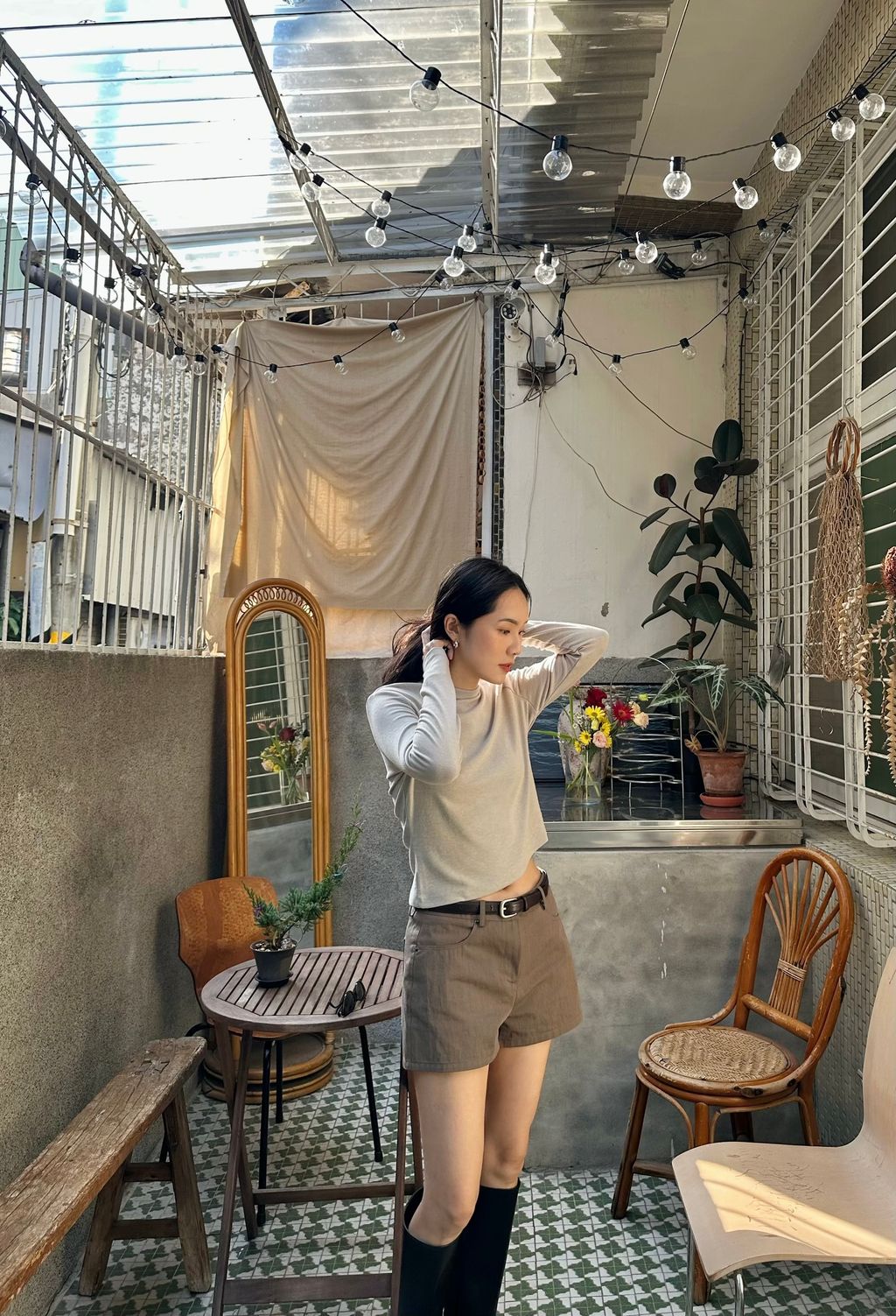 像這類型的短褲我非常看重褲子的長度跟寬度,因為要讓腿最顯瘦、顯長的比例,褲長落下的位置非常重要