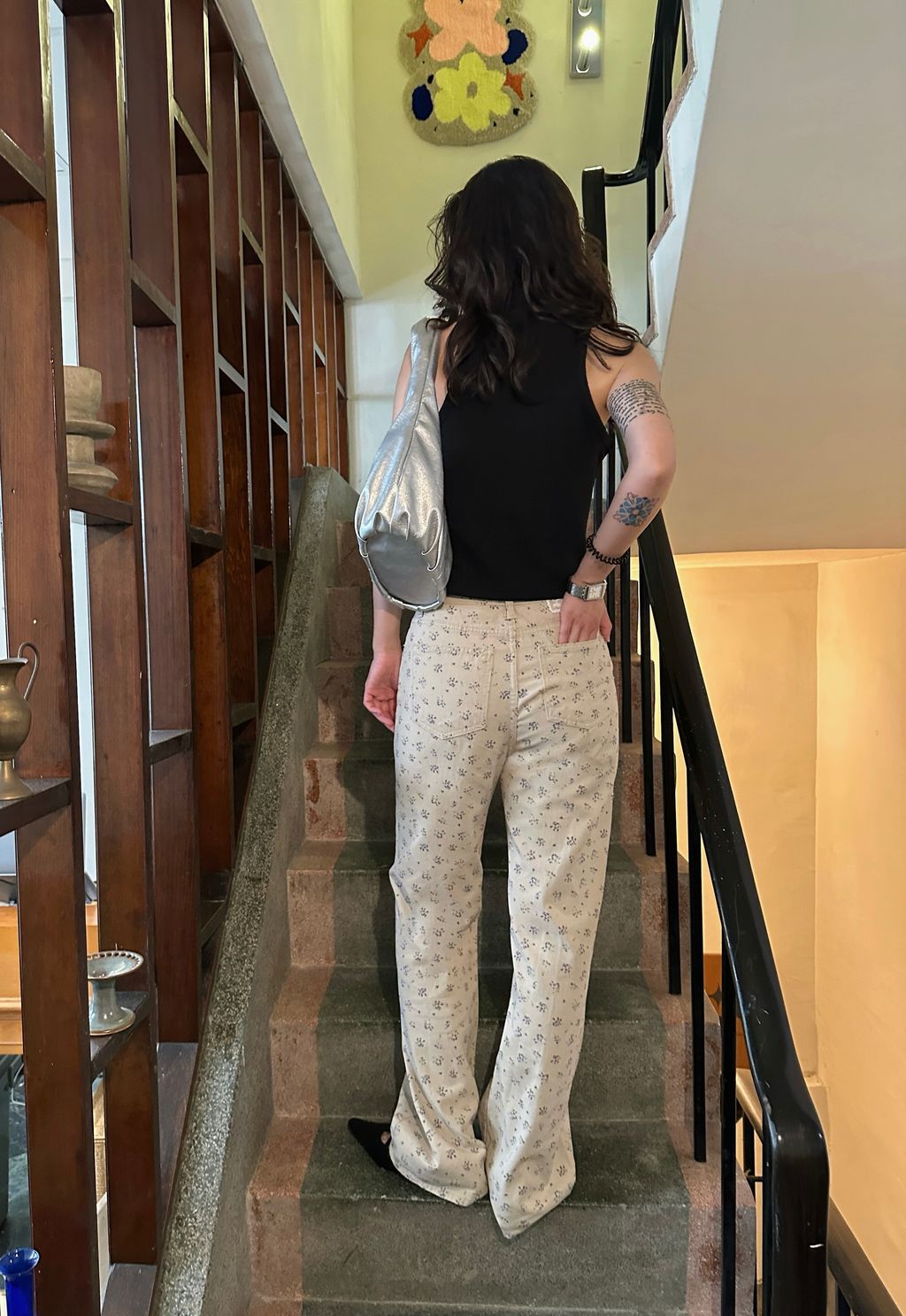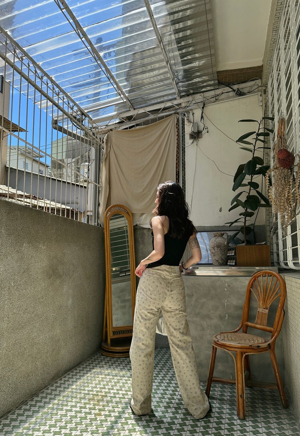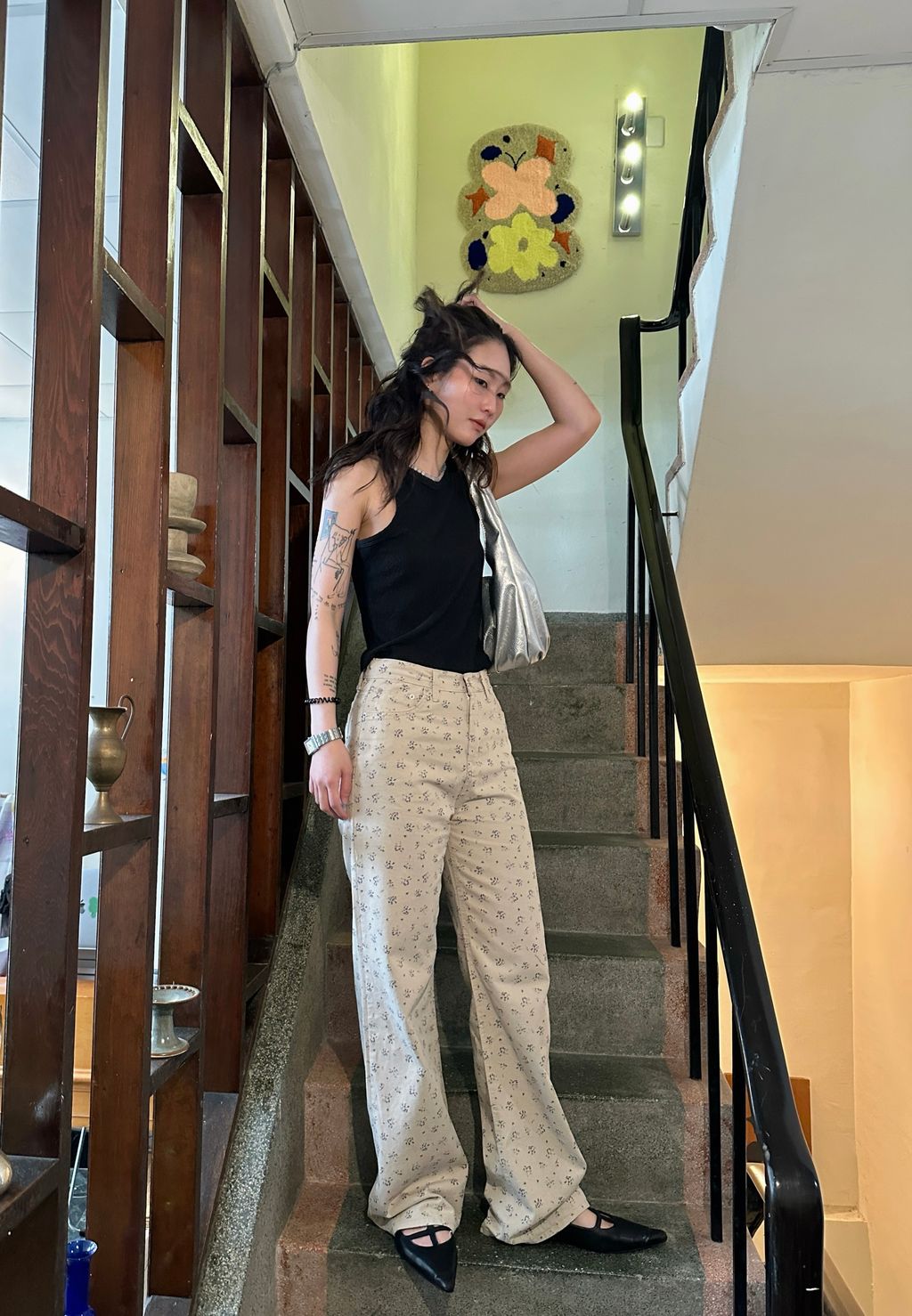 這款的布料真的滿難得的,很少見這種滿版碎花的長褲是很輕薄的布料,穿起來既顯瘦又不悶熱