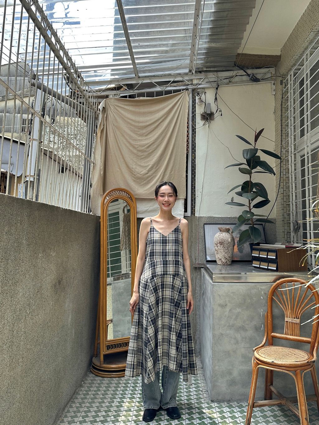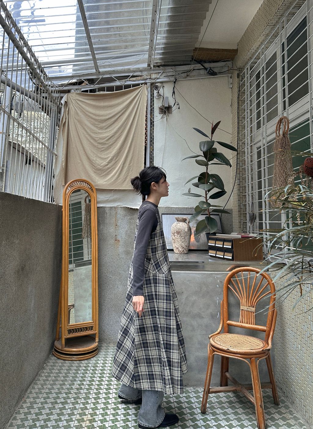 整體寬鬆的版型,即使有肉肉的女生也可以駕馭,肩帶可調整裙長