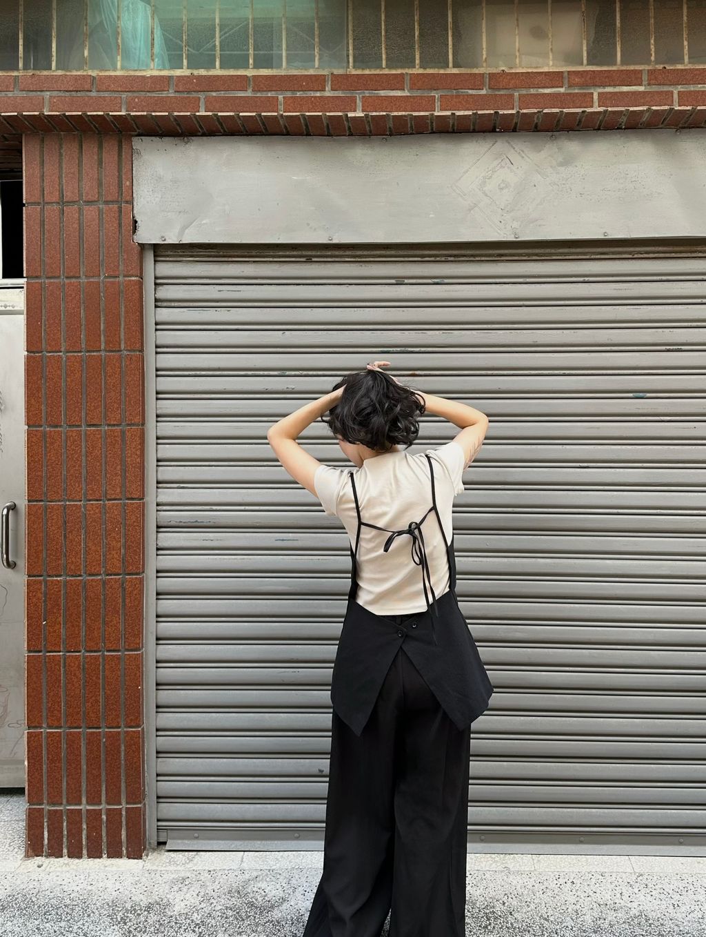 背後的設計也很美,這個細節除了很有亮點,其實也是一個修飾重點,讓視覺更加輕盈,不會整身太過於合身的感覺