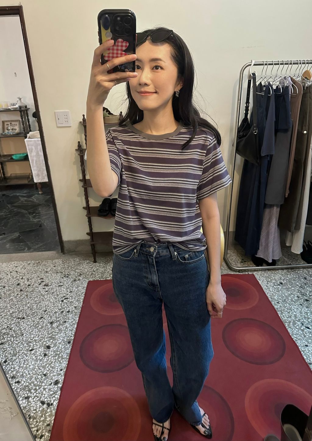 這件就是版型、材質,條紋的樣式跟顏色都好看!所以試穿後馬上決定留,畢竟條紋有他專屬的搭配性
