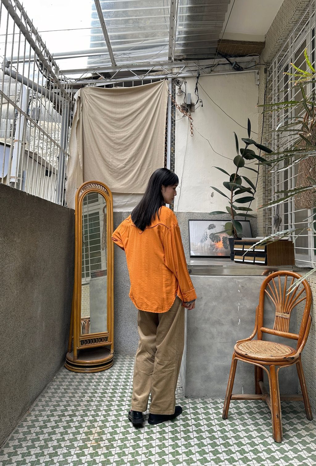 穿上讓腿很直的版型,算是這季看下來褲管最不肥大的樣式,所以很滿意