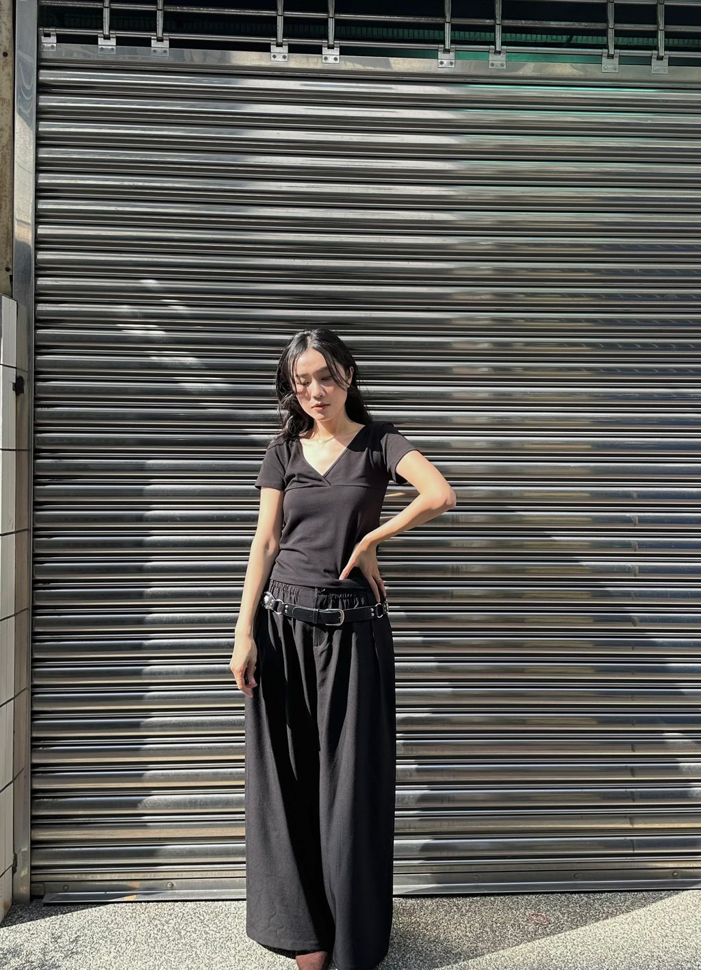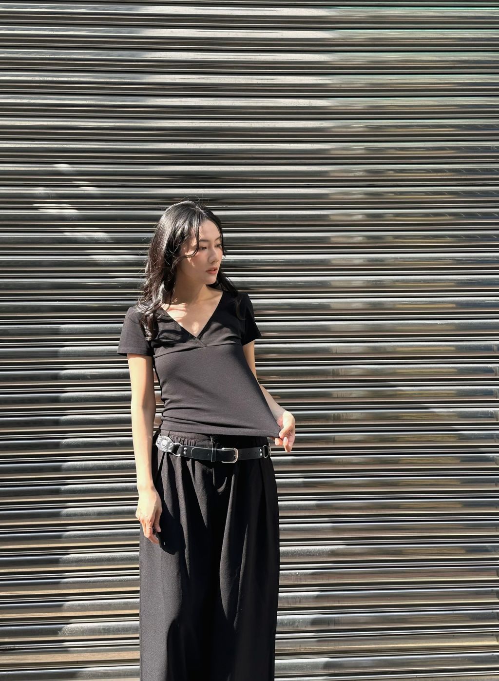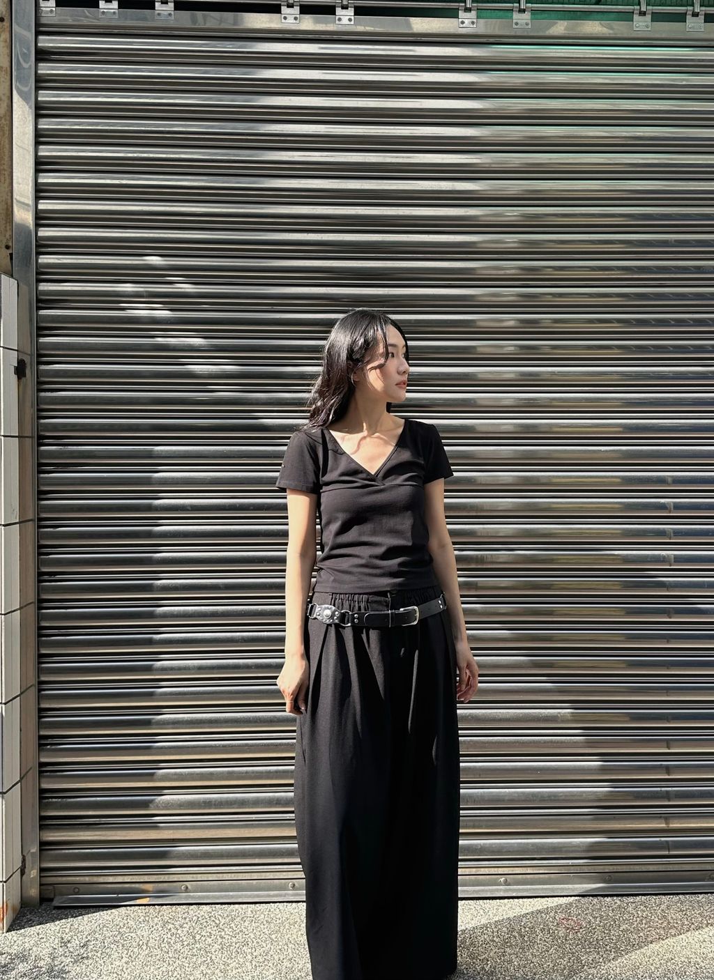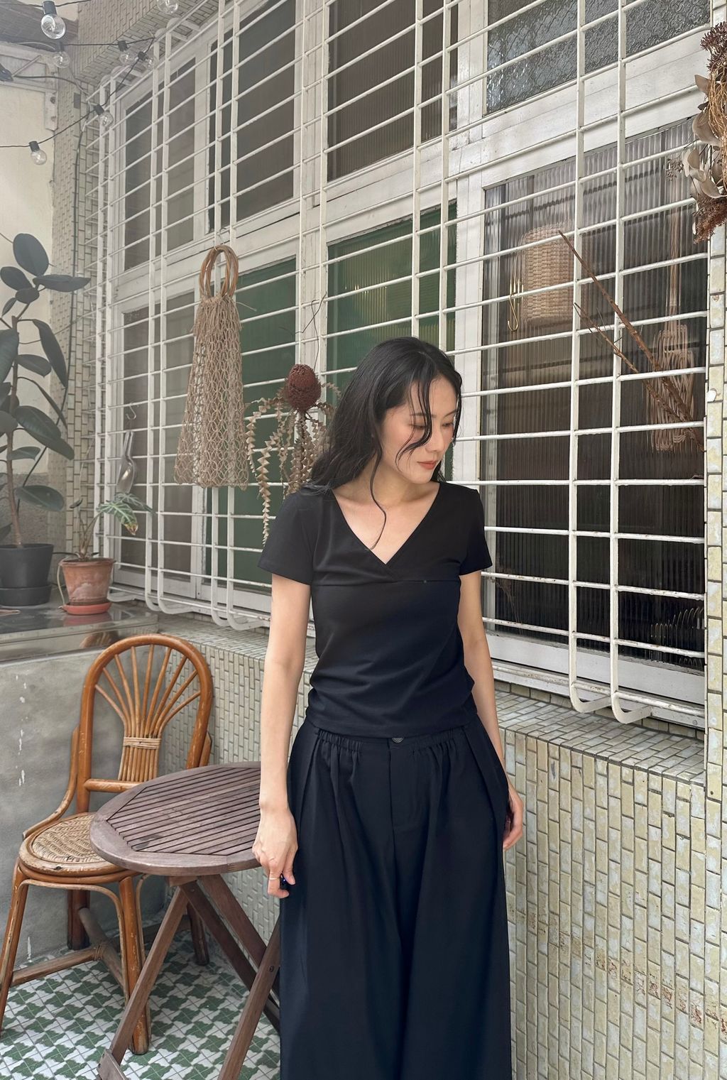 恰到好處的v領,展示脖子跟鎖骨線條,夏日不會過於包覆,視覺上也很輕盈