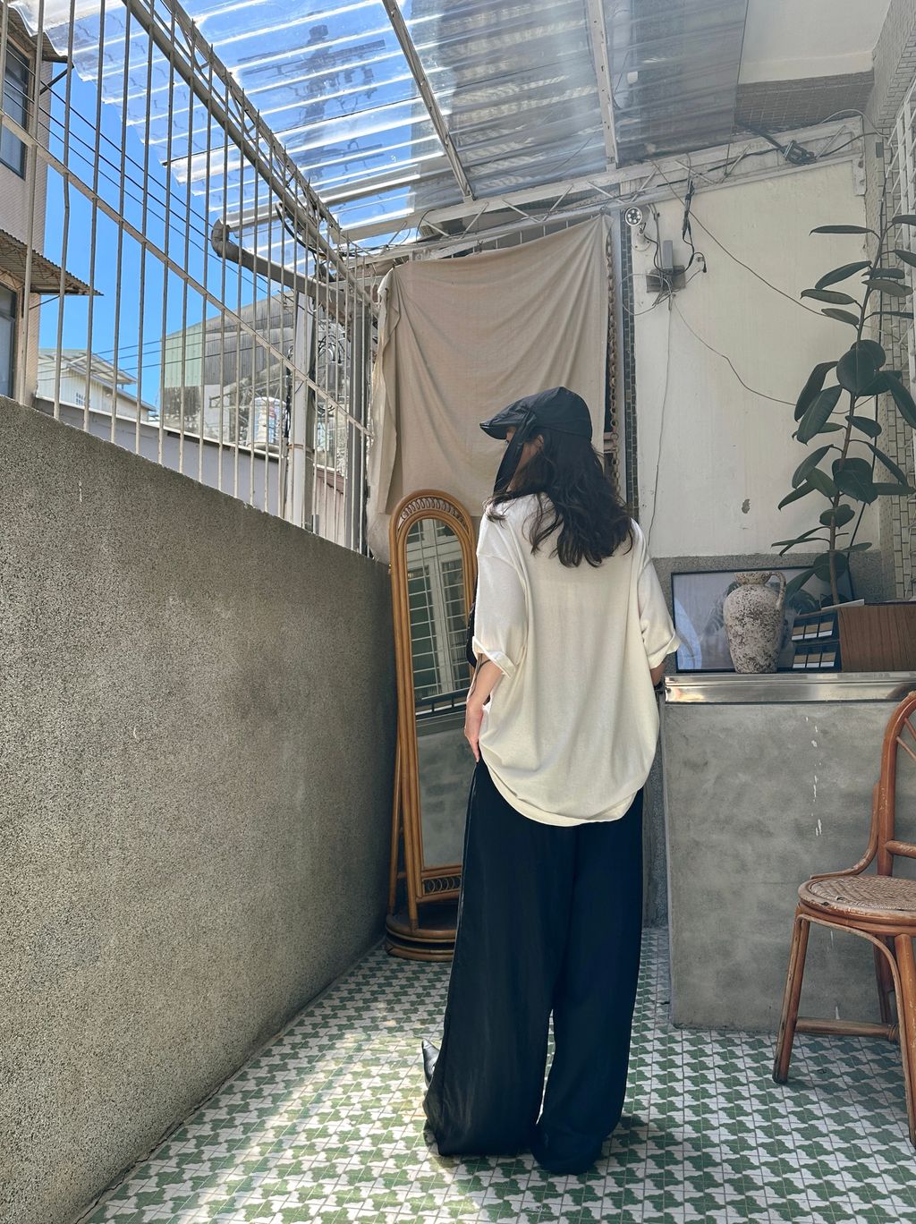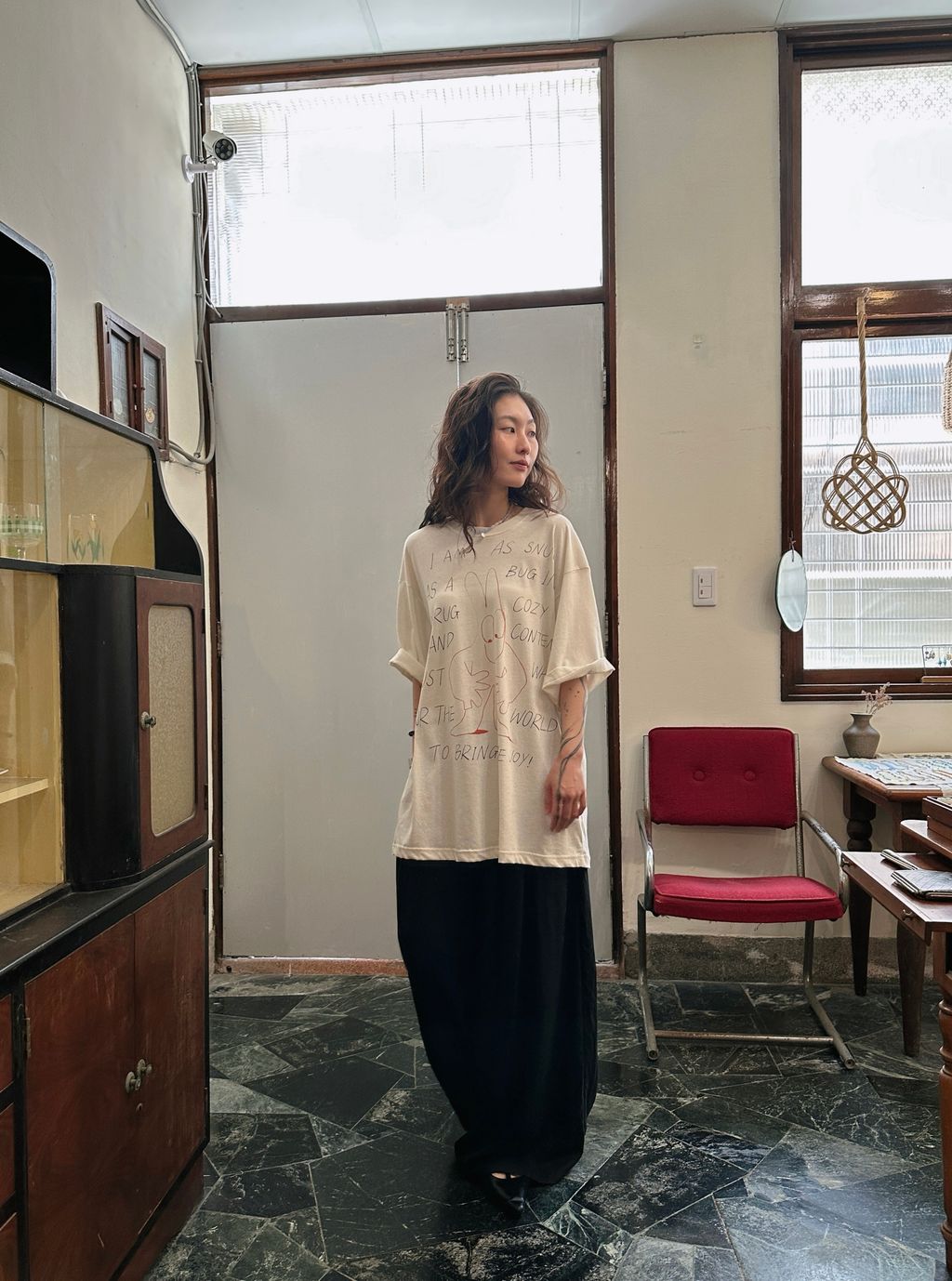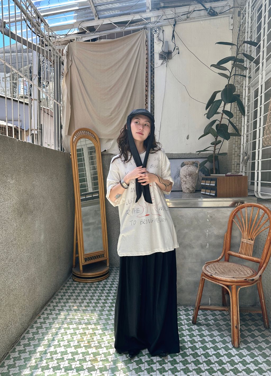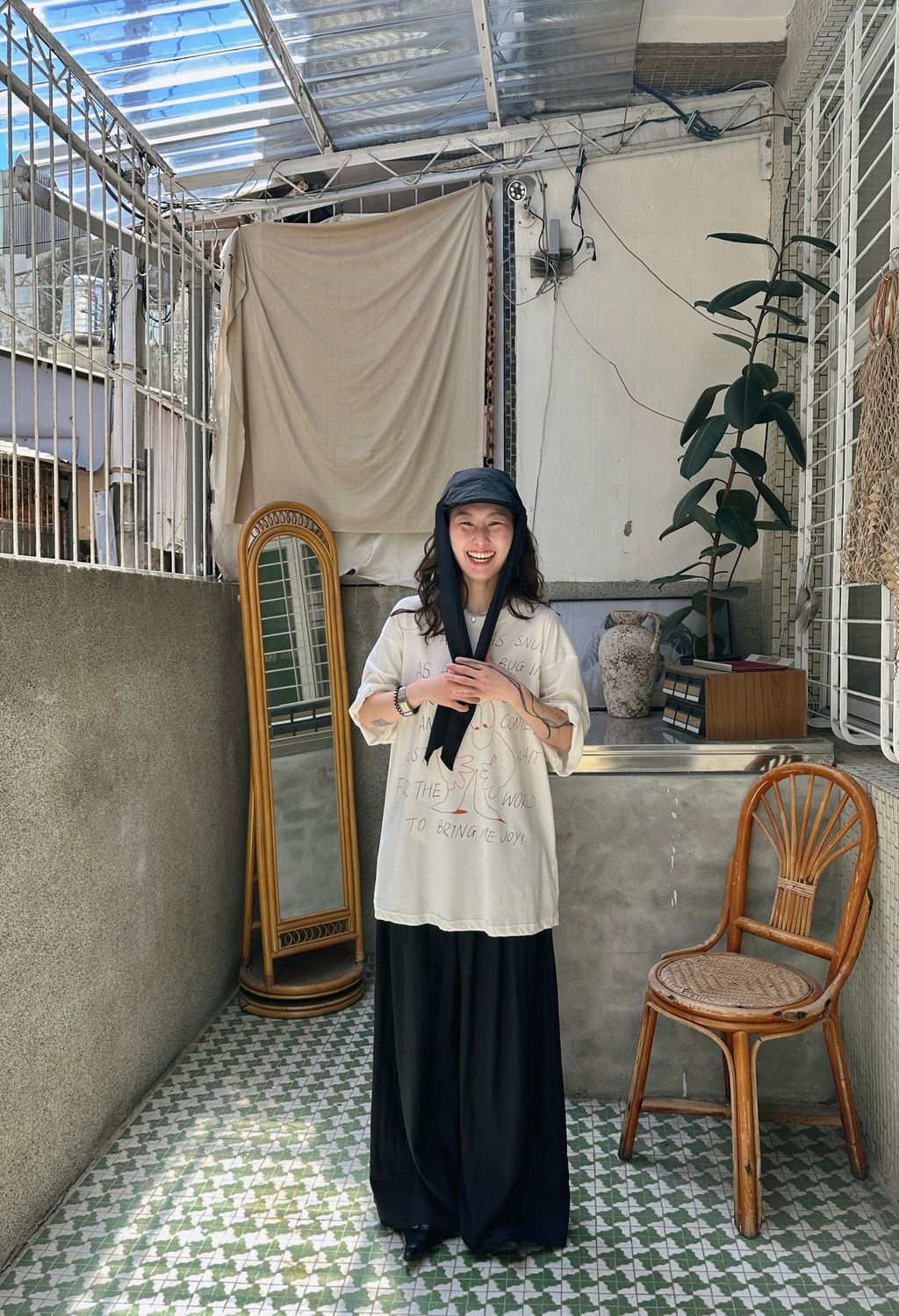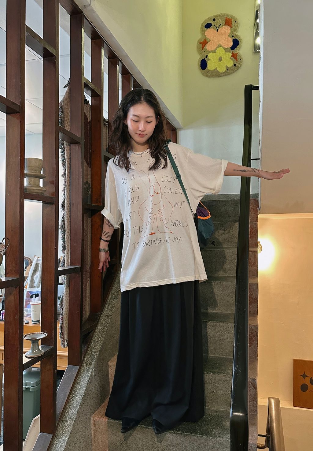 版型又很個性、可愛,over size的剪裁搭配上輕薄軟綿布的質感,讓大大的尺寸穿起來更加自然,垂墜感也很好看
