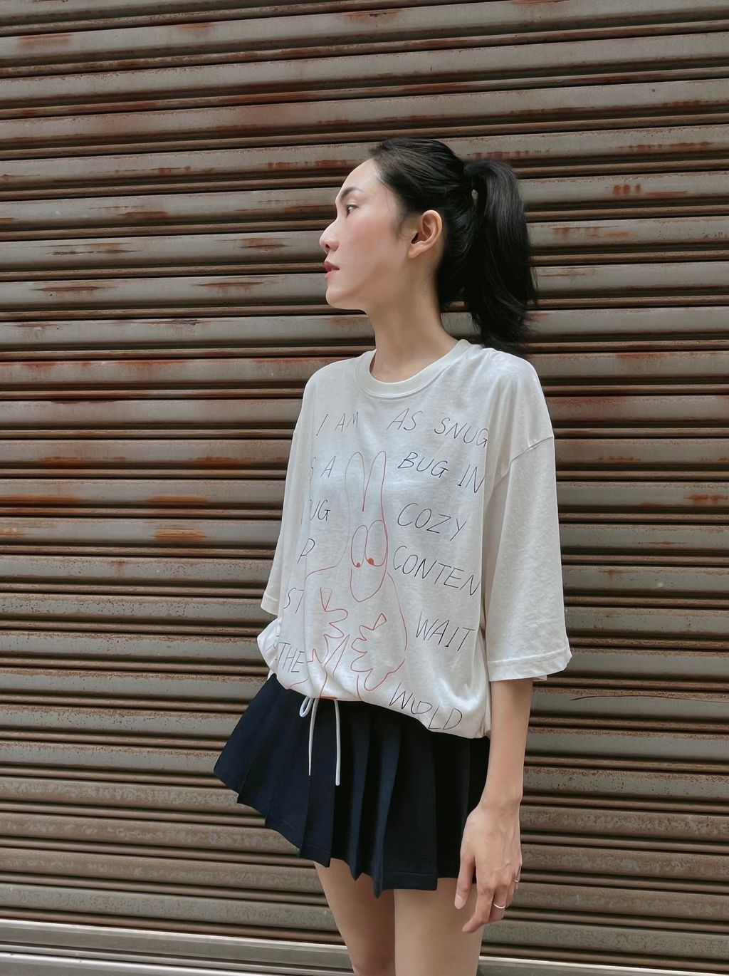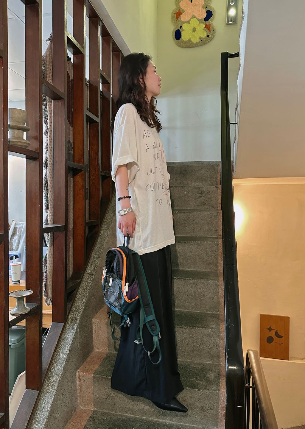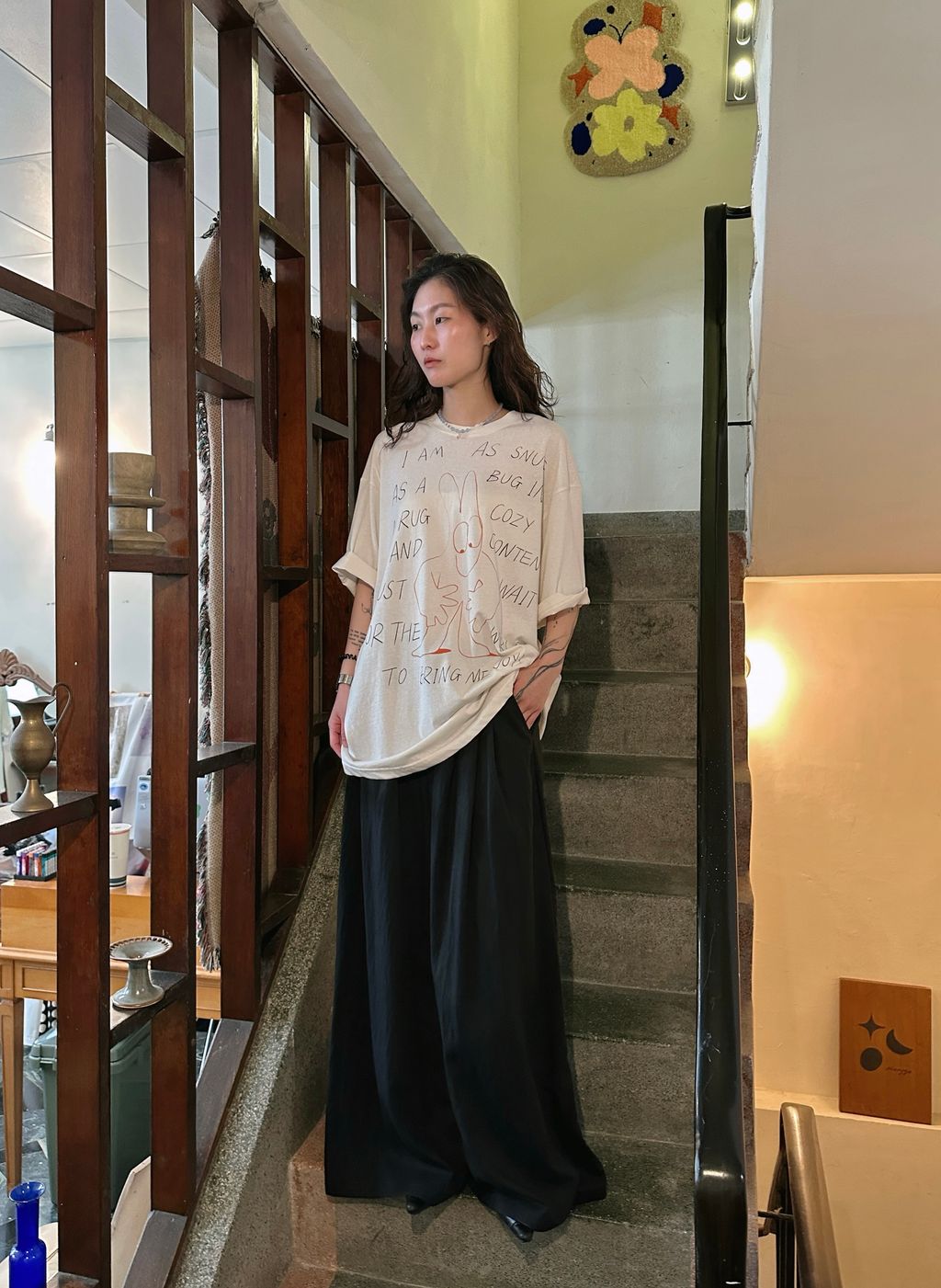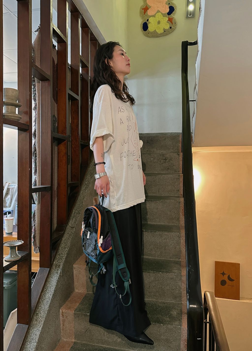 版型又很個性、可愛,over size的剪裁搭配上輕薄軟綿布的質感,讓大大的尺寸穿起來更加自然,垂墜感也很好看