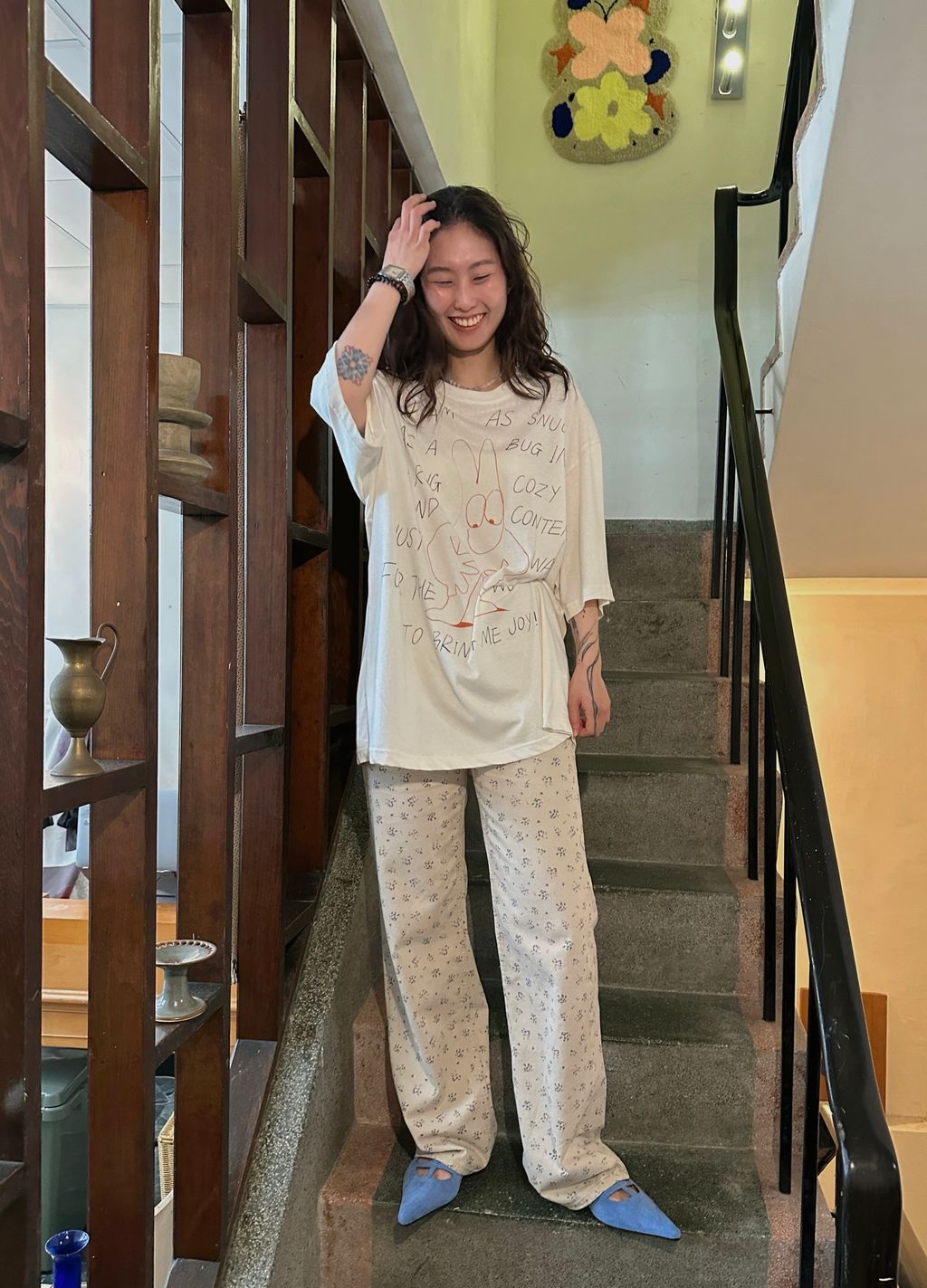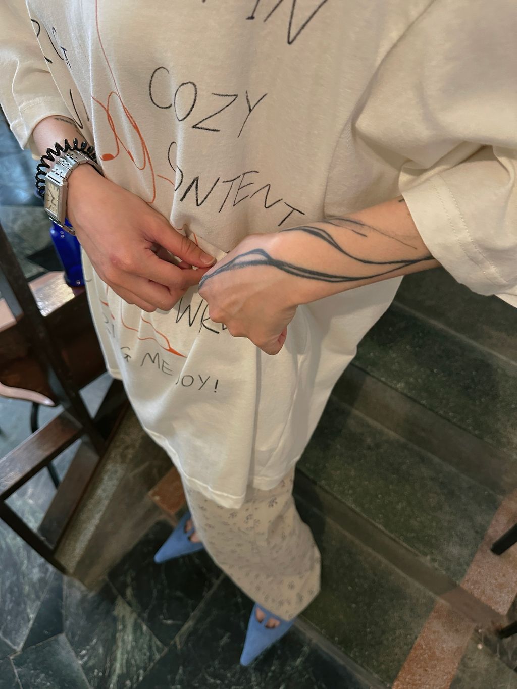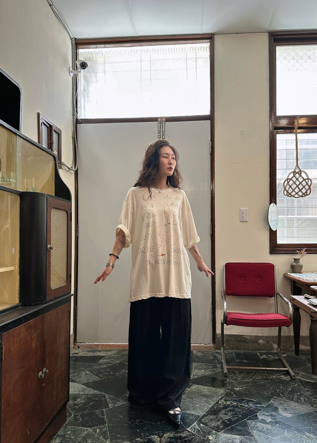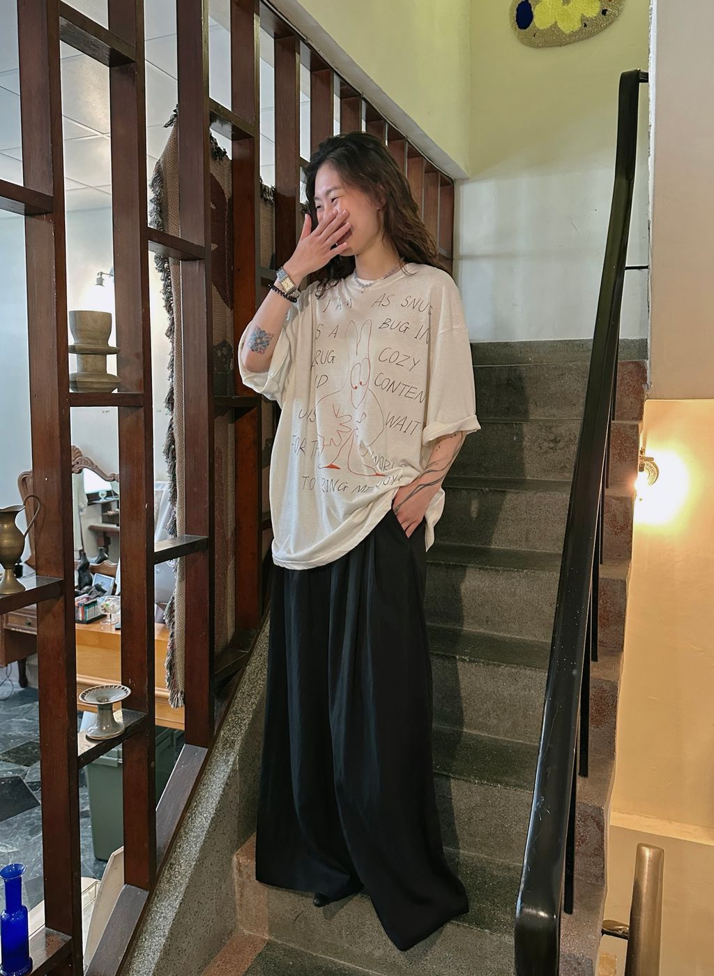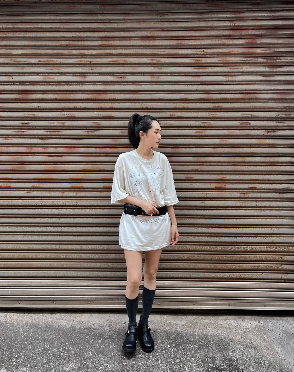 版型又很個性、可愛,over size的剪裁搭配上輕薄軟綿布的質感,讓大大的尺寸穿起來更加自然,垂墜感也很好看