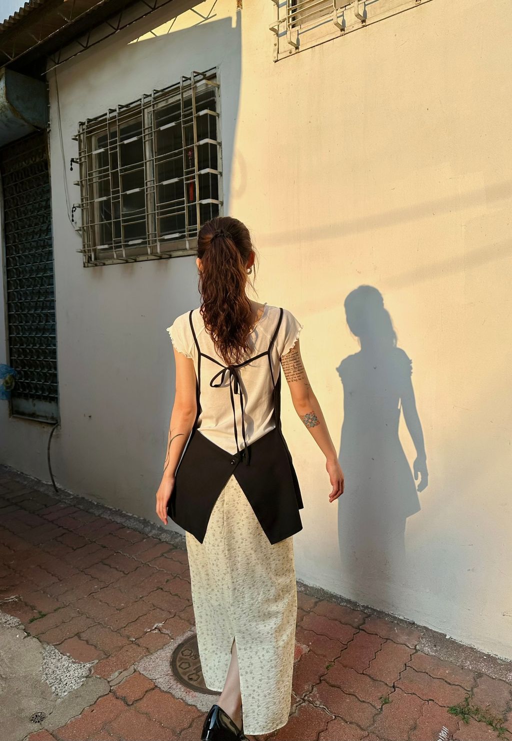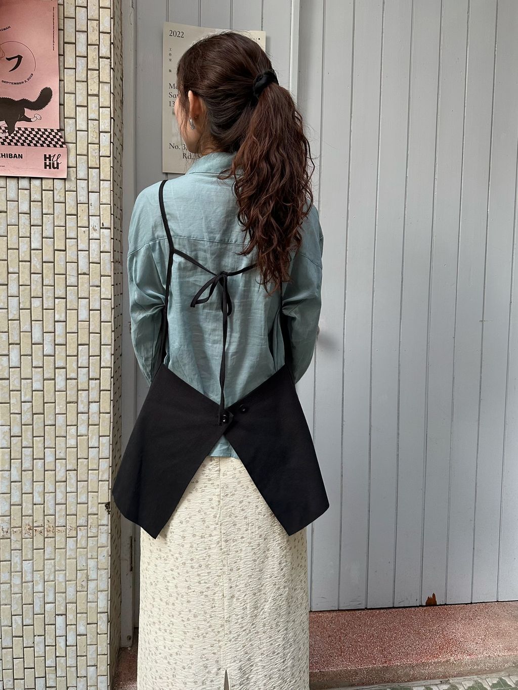 背後的設計也很美,這個細節除了很有亮點,其實也是一個修飾重點,讓視覺更加輕盈,不會整身太過於合身的感覺