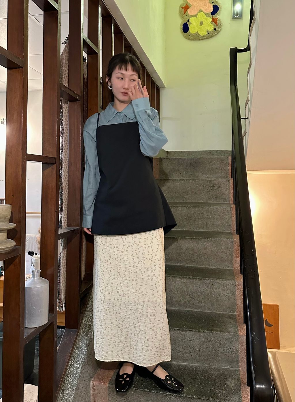 還有一點就是他的版型很修飾,自帶腰身比例,以及a字小裙擺的剪裁看以遮骻寬,兩個修飾重點,就可以很顯瘦了