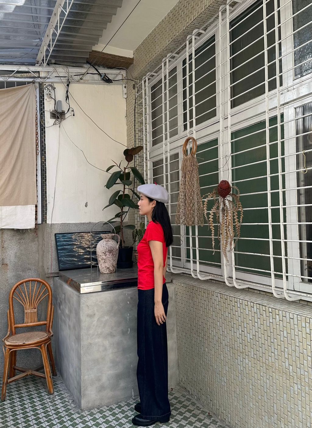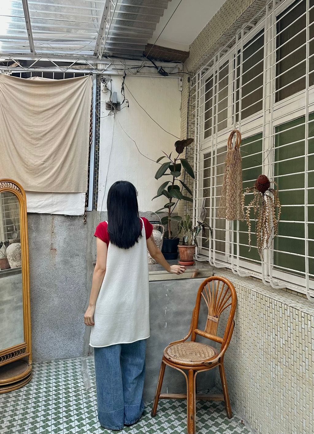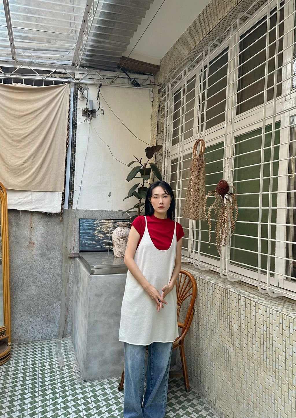 因為是有點合身的版型,所以除了單穿很乾淨俐落,也特別適合搭配在洋裝、背心、外套裡