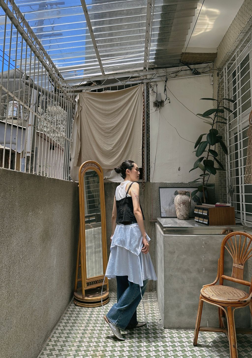 很喜歡布料的立體皺摺,柔軟加上輕透的布料質地,讓背心更有層次