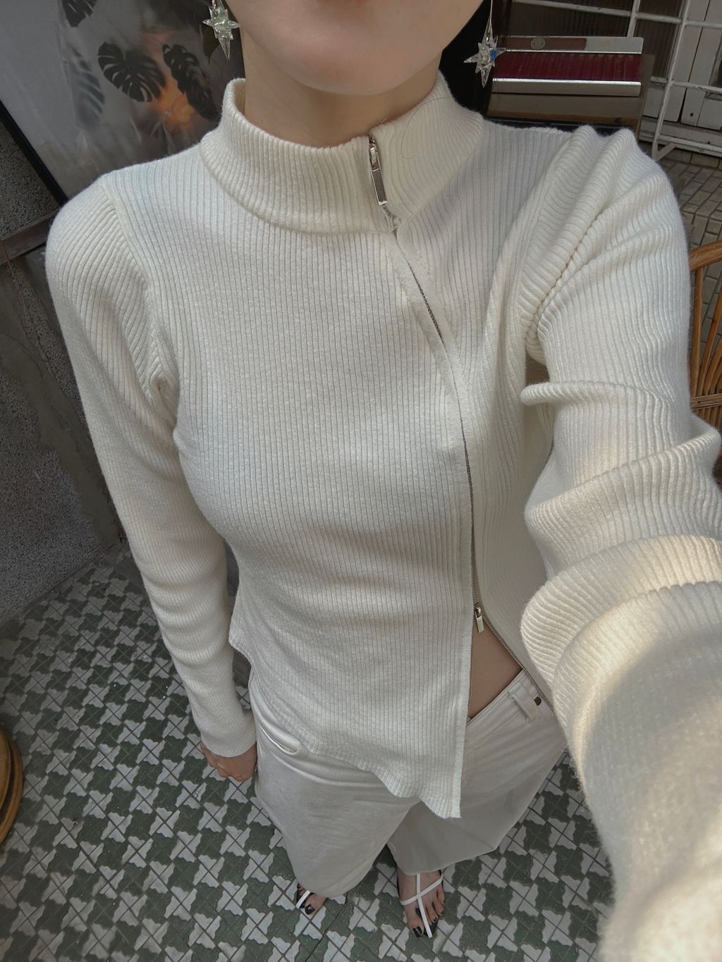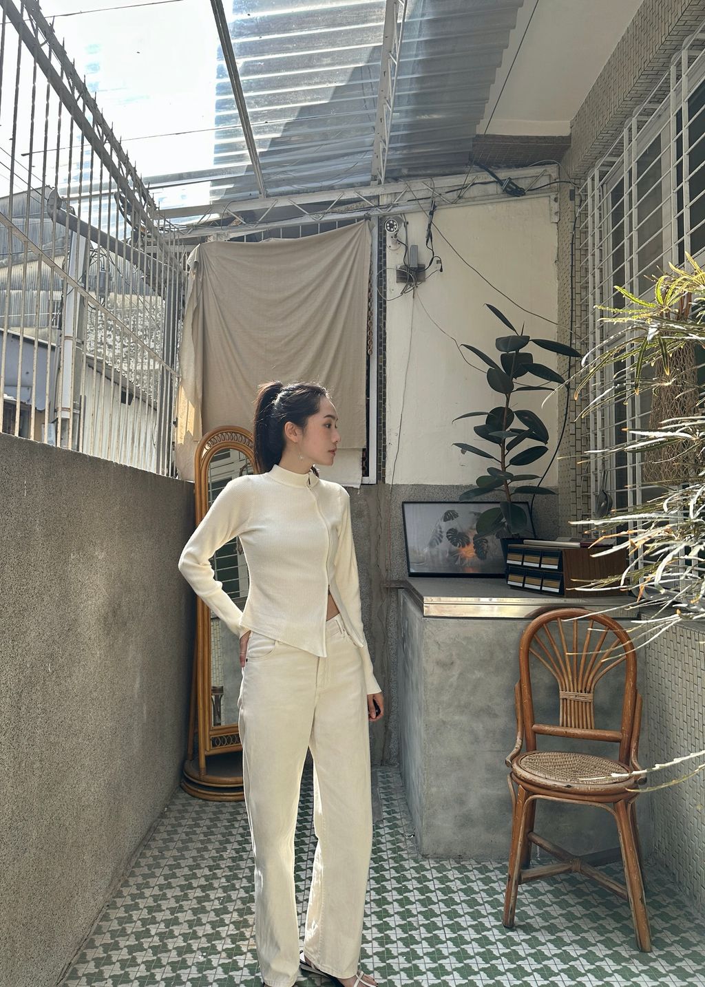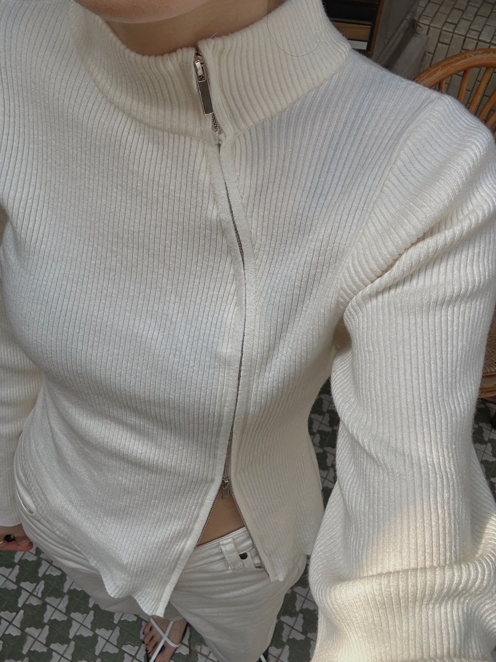 是一件有個性的針織衫,但又不過於花俏,柔和經典的米白色,讓設計更耐看
