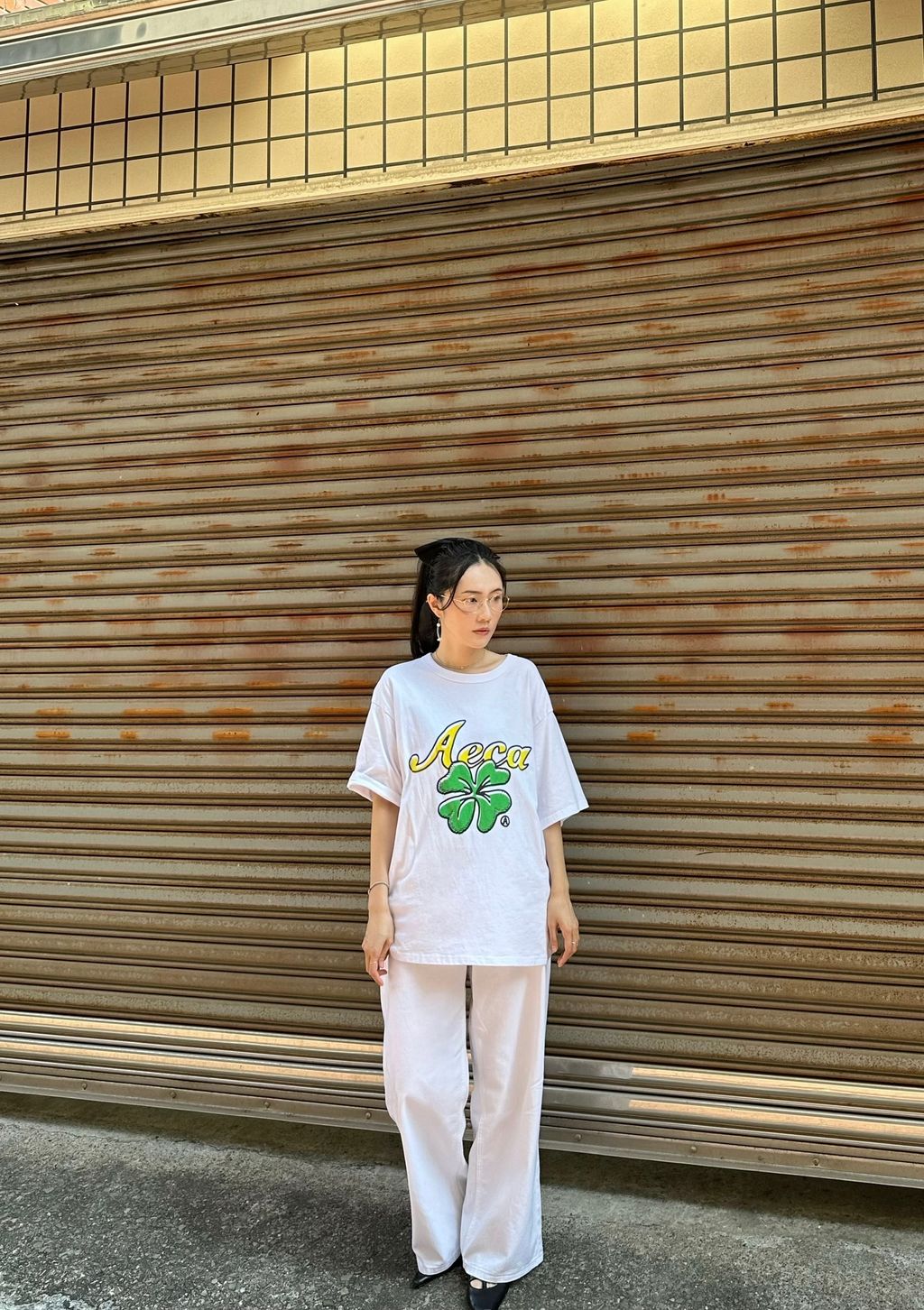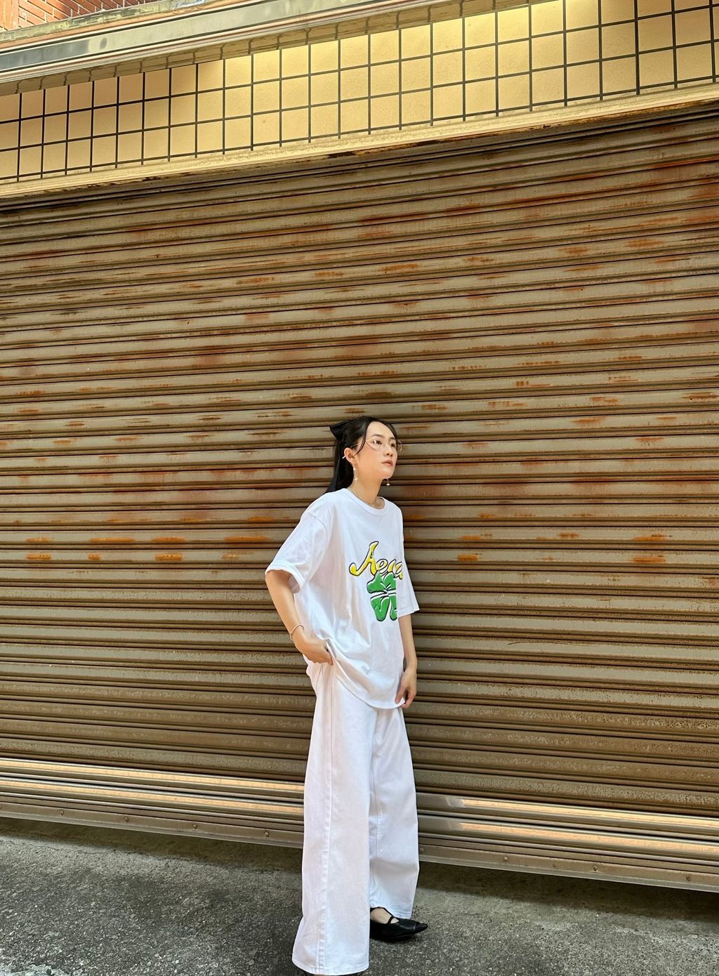 純白寬鬆直筒長褲