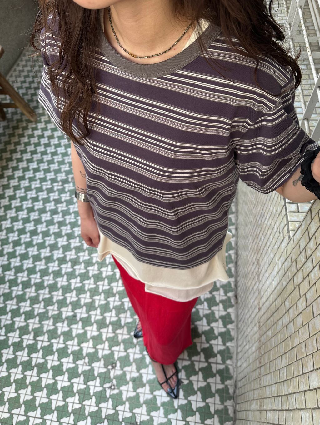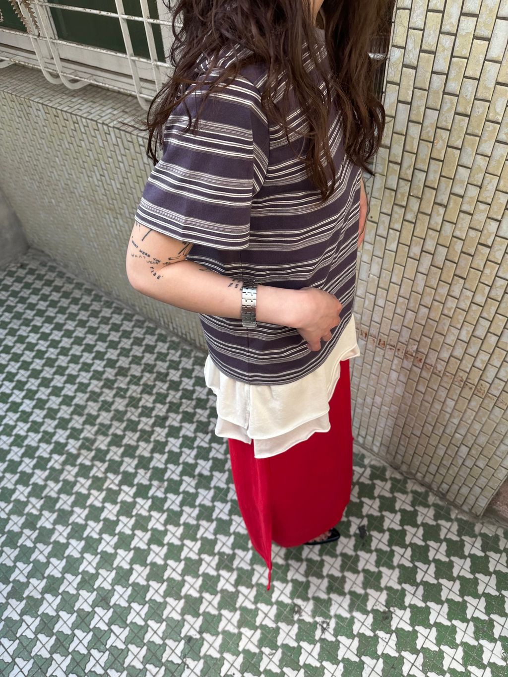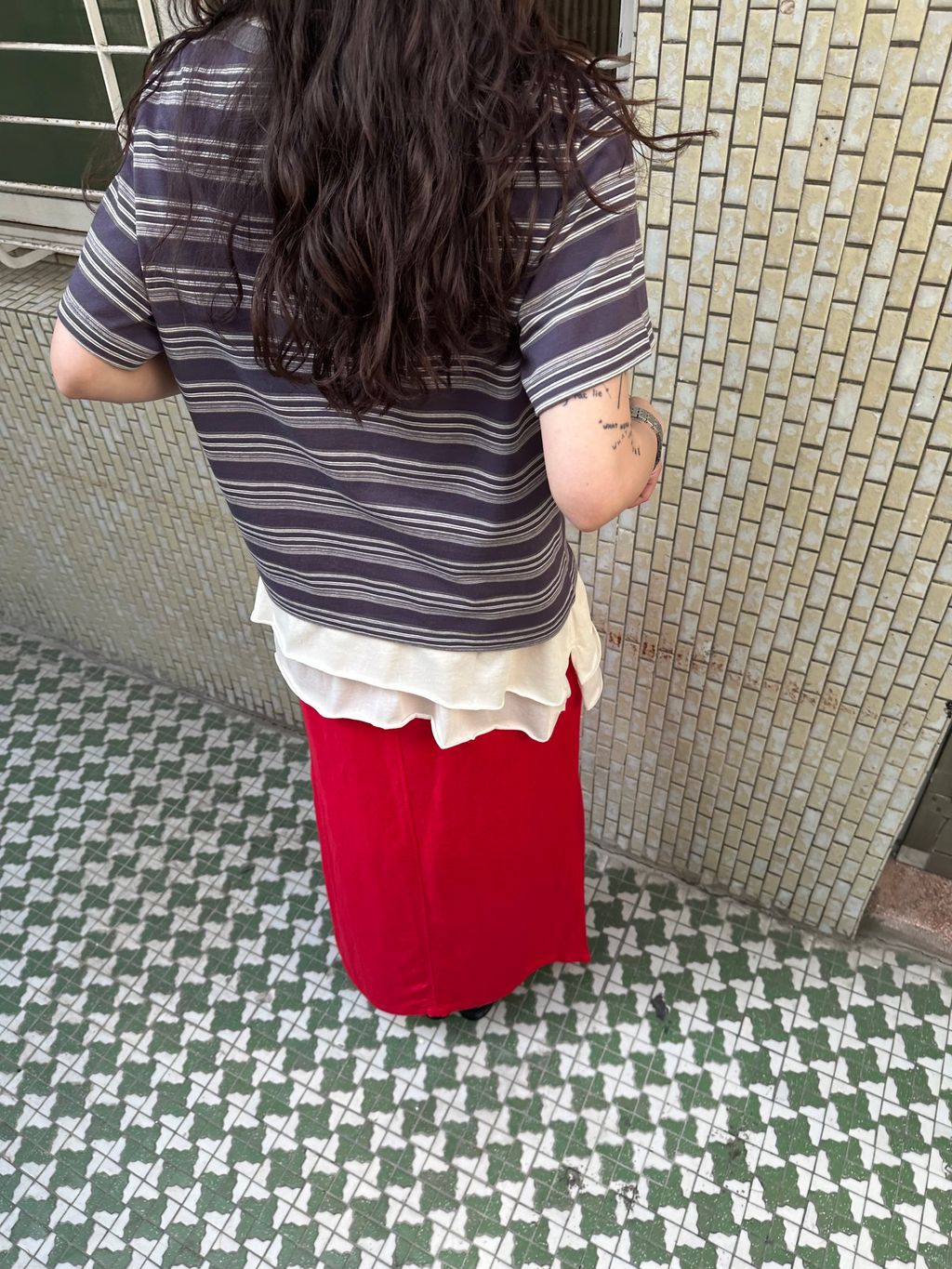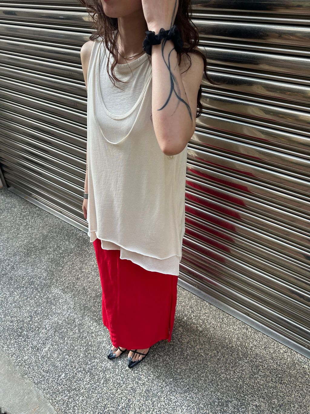 這件裙子的設計,我推薦可以搭配上半身比較長版與帶寬鬆度的款式,下半身會有更收斂修飾的效果,整體更顯瘦
