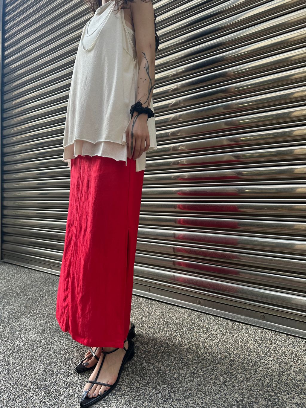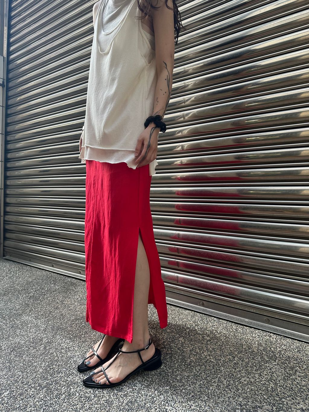 蕃茄紅直筒開衩裙