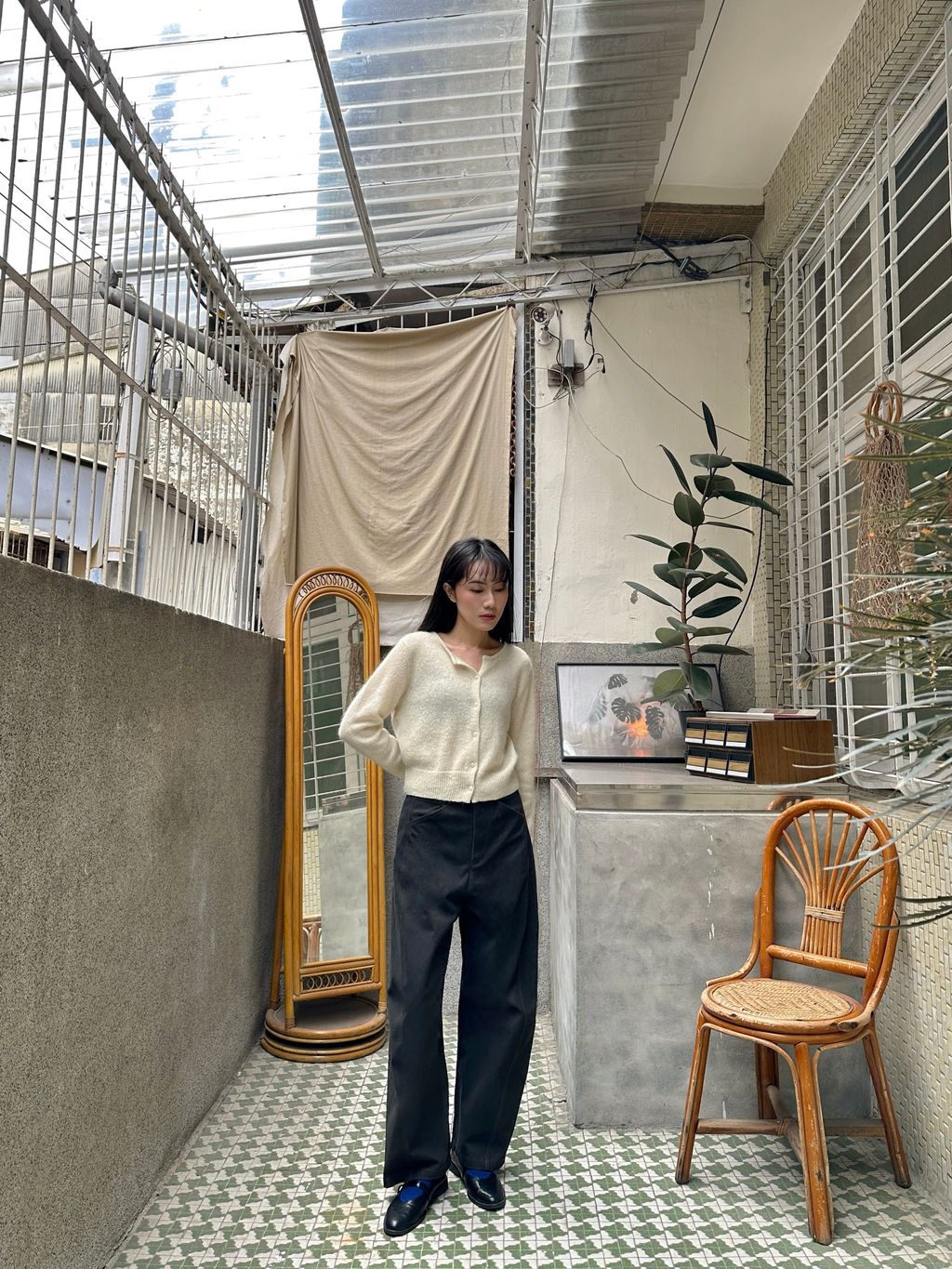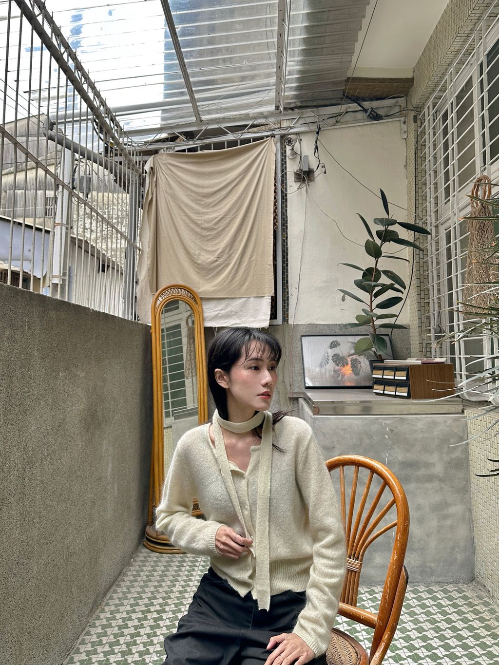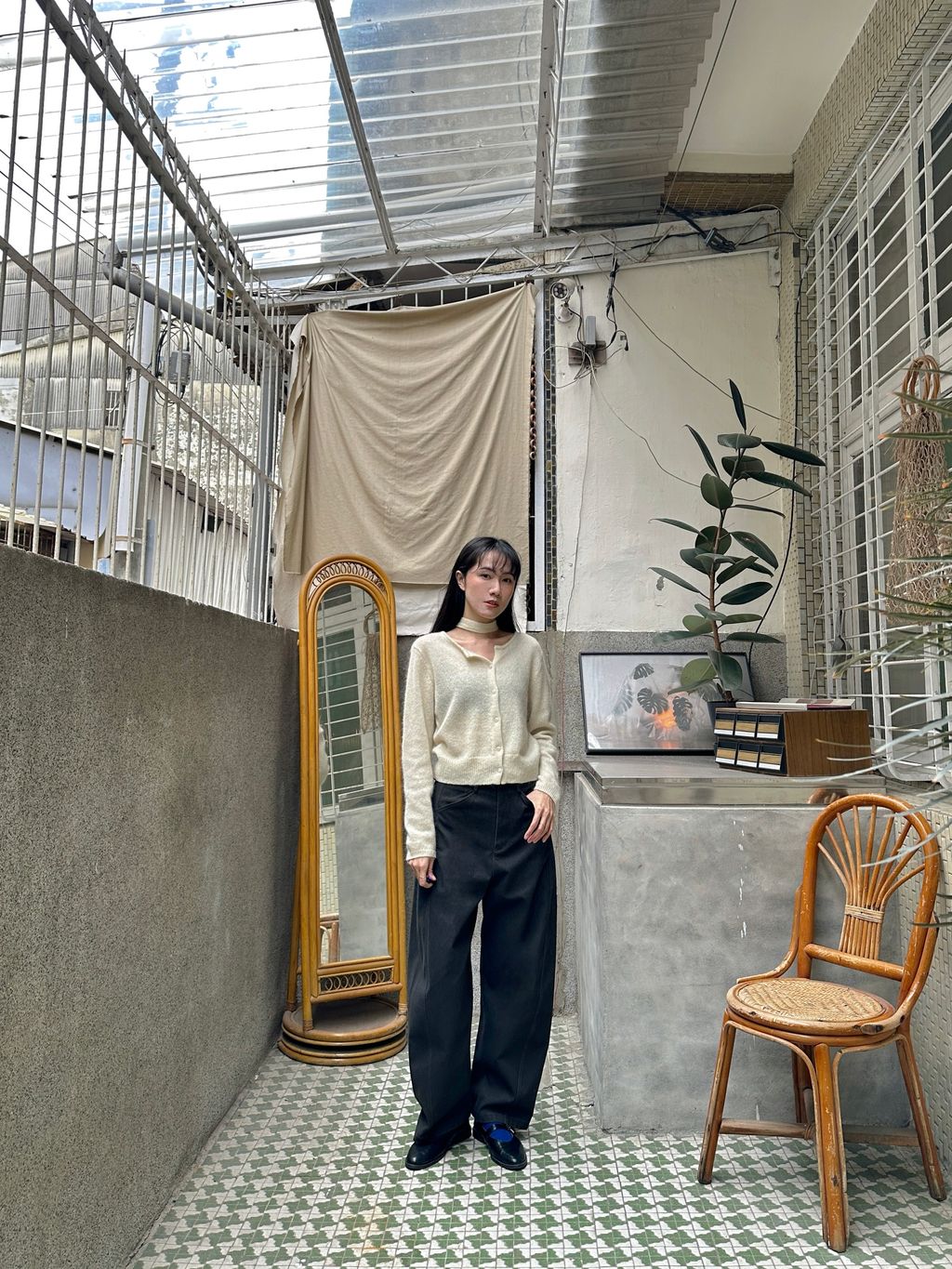 這件當上衣再去套各種剪裁的外套很時髦,而且隱約露出好看的領口邊緣,很精緻的穿搭細節