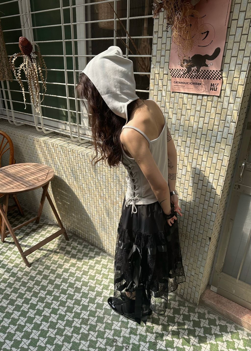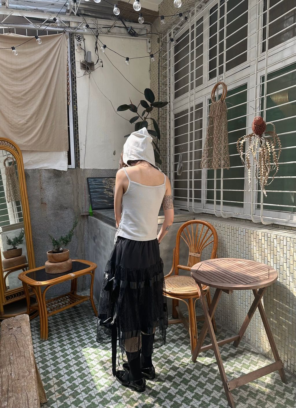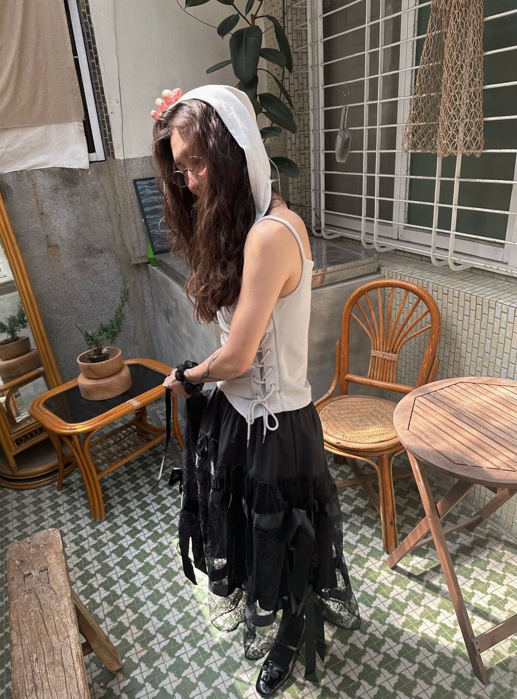 這件模特兒穿整體還有滿大的空隙,布料本身也有彈性,有肉肉的女生也適合唷