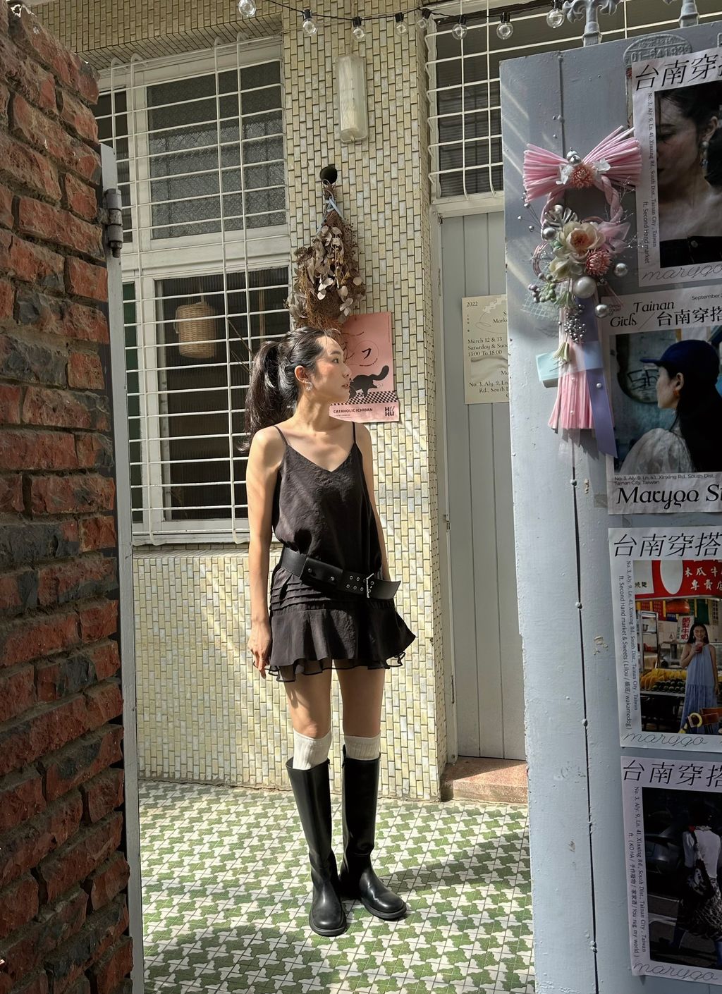 照片示範了多種細節差異的打扮,像是利用皮帶、內搭內心做層次,內搭褲子或裙子