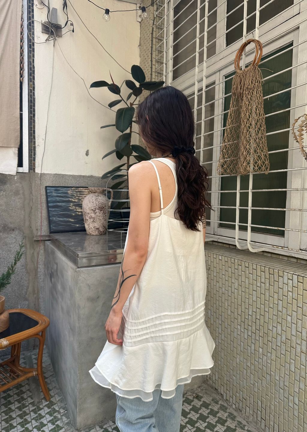 下擺除了雙層裙擺,還車縫了細膩的立體裝飾摺線