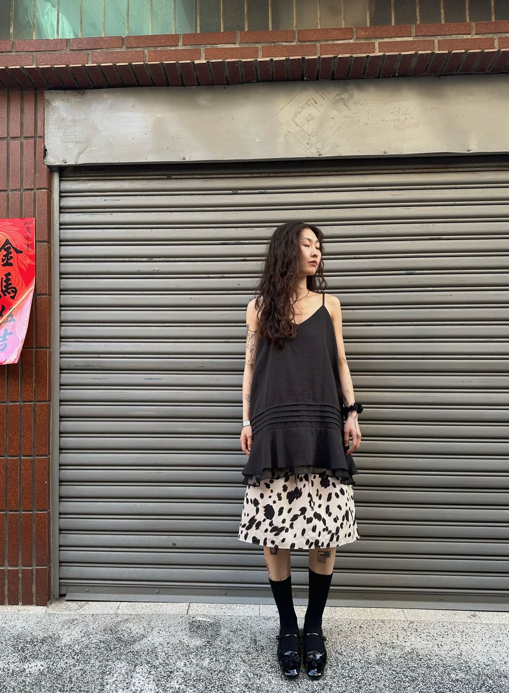 很喜歡這件的低腰剪裁跟雙層的裙擺設計,兩種布料的層次感太美