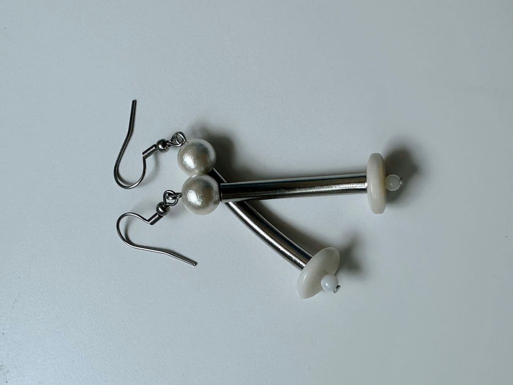 耳針為抗敏鋼針,素材有日本棉花珍珠,表面有很美的細緻肌理,色澤很美