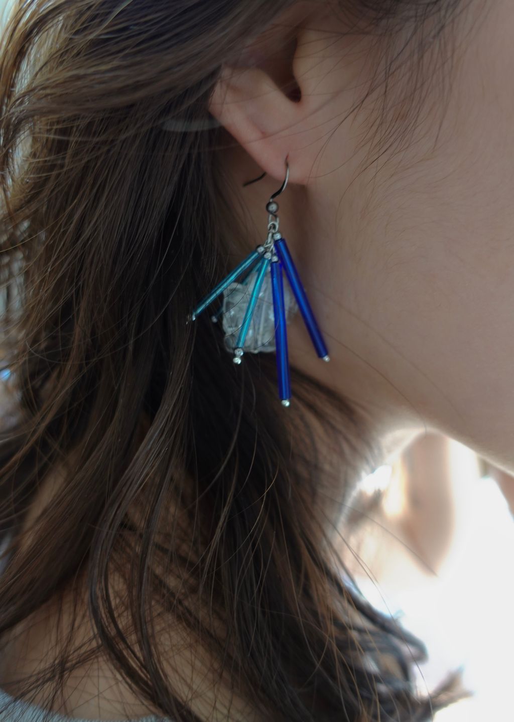 不同色系的藍色細玻璃管互相襯托,長度不規則的效果戴起來很美