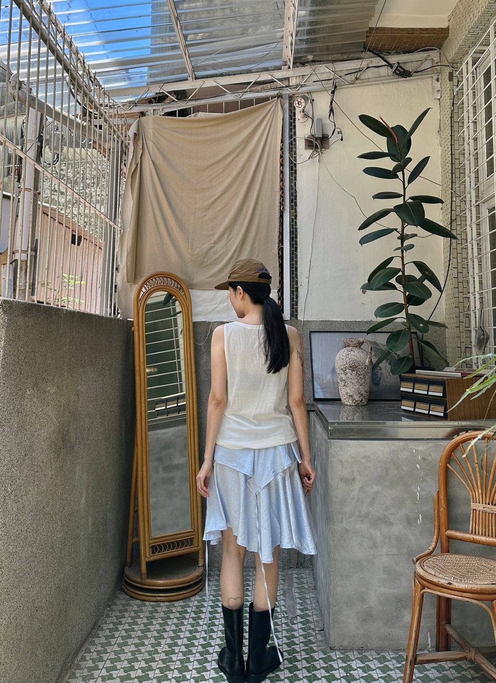 不規則的裙擺搭配上鬆緊腰圍,可以自行調整裙擺方向,沒有一定的正面
