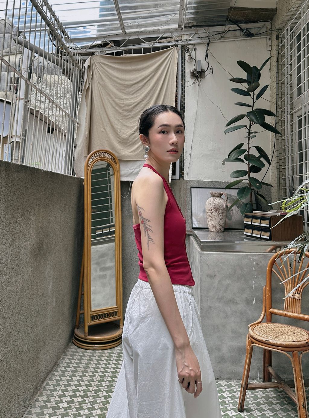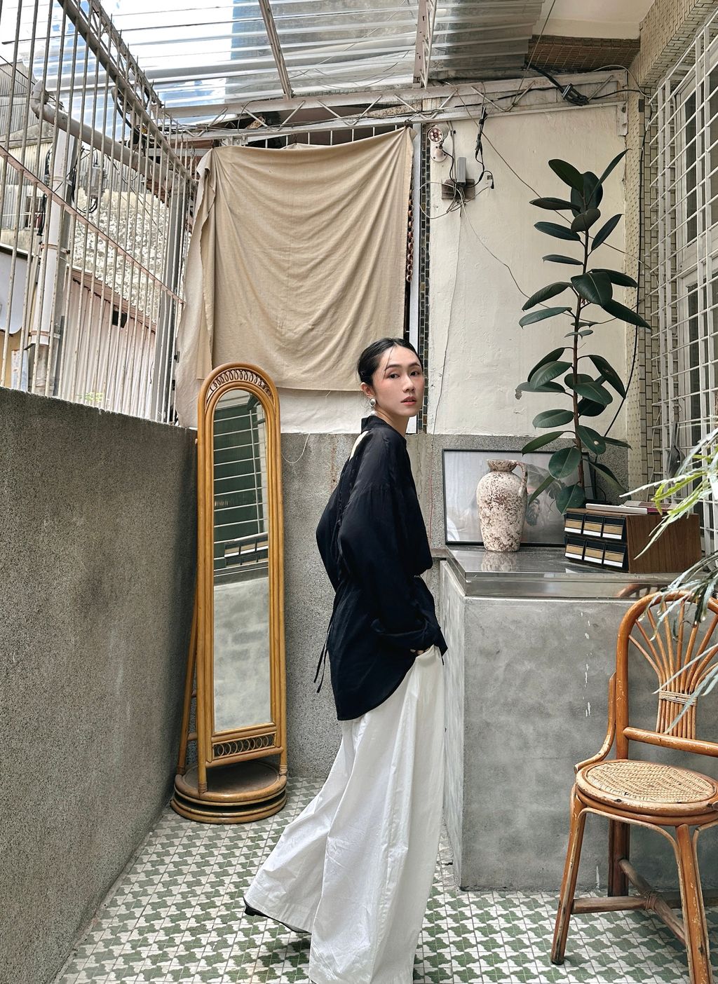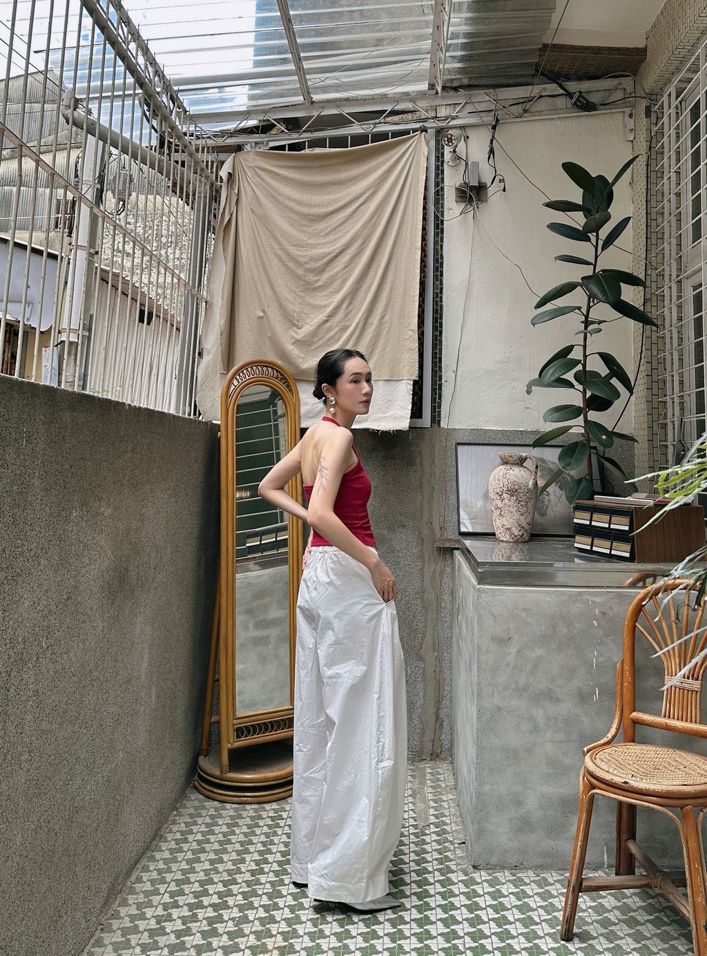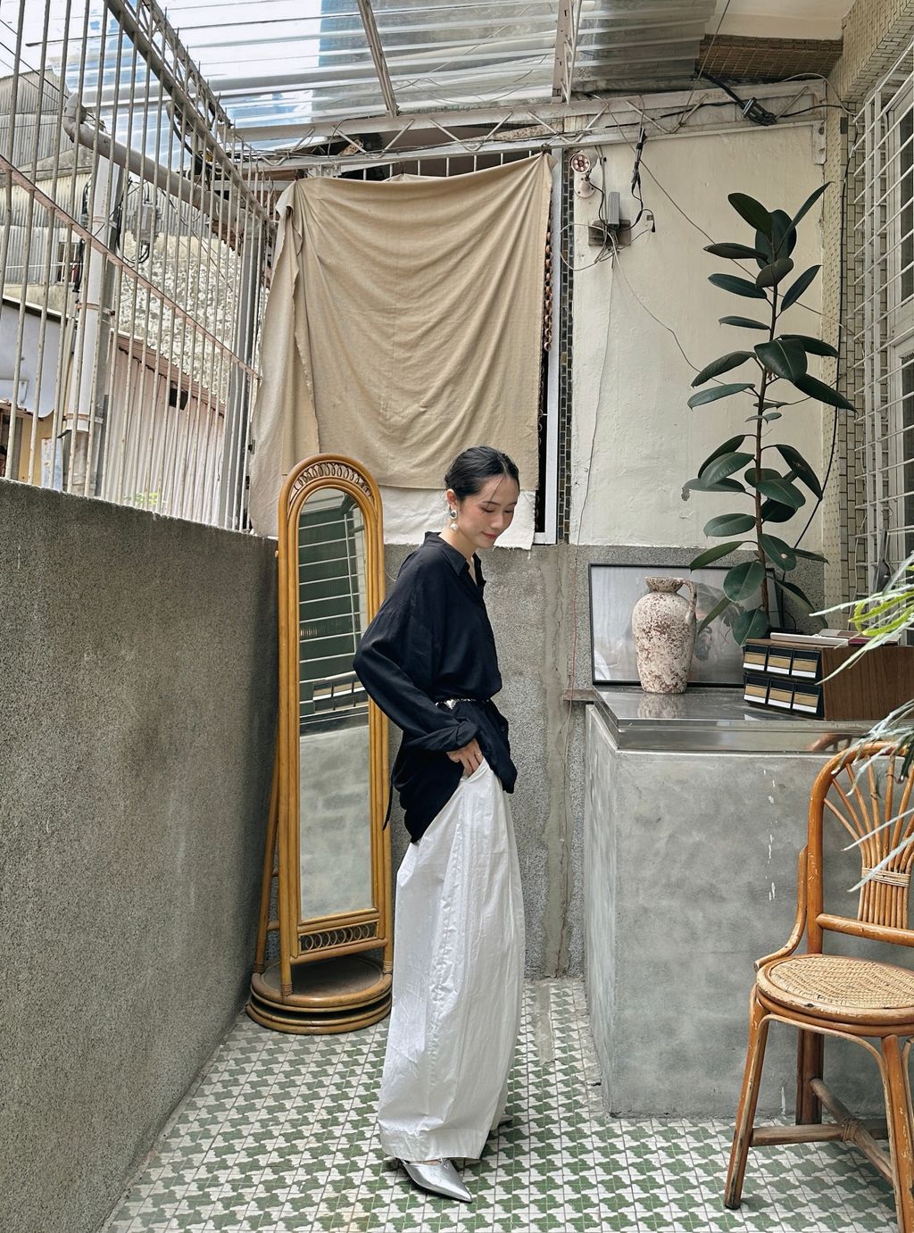 顏色很漂亮的帶著些微光澤,搭配這樣的褲型很剛好,不會太酷,也可以做出比較女生一點的風格,當然中性或個性都很適合